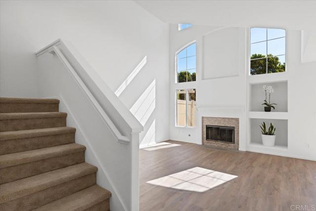 Welcome to refined living in the prestigious Alacima gated community of Rancho Del Oro — a fully updated 3-bedroom, 2.5-bath townhome that effortlessly blends modern elegance with everyday functionality. From the moment you enter, you’re greeted by a light-filled interior enhanced with fresh designer paint, soaring ceilings, and brand-new luxury vinyl plank flooring that flows seamlessly throughout the main living areas, bathrooms, and laundry room. Plush new carpet on the stairs and in all bedrooms adds warmth and comfort, creating a move-in-ready space that feels both stylish and inviting. The beautifully upgraded kitchen is a true centerpiece, featuring sleek quartz countertops, a deep stainless-steel sink, contemporary fixtures, and a brand-new stainless-steel Frigidaire appliance suite with a gas range — perfect for cooking, entertaining, and daily living alike. Every bathroom has been thoughtfully refreshed with new quartz counters, modern sinks, and updated fixtures, delivering a cohesive and sophisticated aesthetic throughout the home. New LED recessed lighting and energy-efficient windows further elevate the space, offering both brightness and long-term efficiency. The spacious living room showcases dramatic vaulted ceilings, abundant natural light, and a cozy gas fireplace — an ideal setting for relaxing evenings or hosting guests. Just beyond, your private patio provides a versatile outdoor retreat with ample space for dining, gardening, or simply enjoying the Southern California lifestyle. Upstairs, the serene primary suite offers vaulted ceilings, dual closets, and a luxurious soaking tub designed for ultimate relaxation. Two generously sized secondary bedrooms are connected by a convenient Jack-and-Jill bathroom, complete with an updated vanity, quartz counters, modern fixtures, and a refreshed tub/shower combination. Additional highlights include a well-appointed upstairs laundry room with ample cabinetry and hookups for both gas and electric dryers, adding everyday convenience. Residents of Alacima enjoy beautifully maintained grounds and resort-style amenities, including a heated pool, spa, and playground — all just steps from your door. Ideally located near shopping, dining, top-rated schools, and with easy access to both Highway 76 and Highway 78, this exceptional home offers the perfect blend of comfort, style, and location.