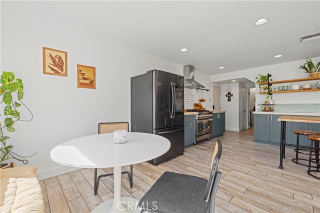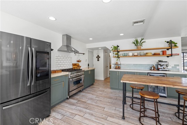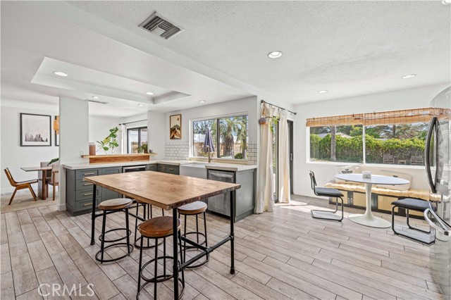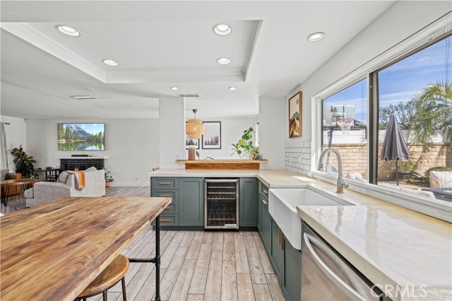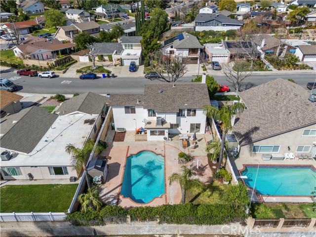 The entire first floor flows together in an open, airy layout. The expanded chef’s kitchen is a showpiece with a 6-burner range, custom concrete counters with a pearl-shine overlay, soft-close shaker cabinets, and a cozy breakfast nook. From the back of the house you get panoramic views of a private yard and sparkling pool, with no rear neighbors for added peace and privacy.