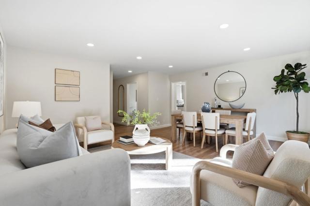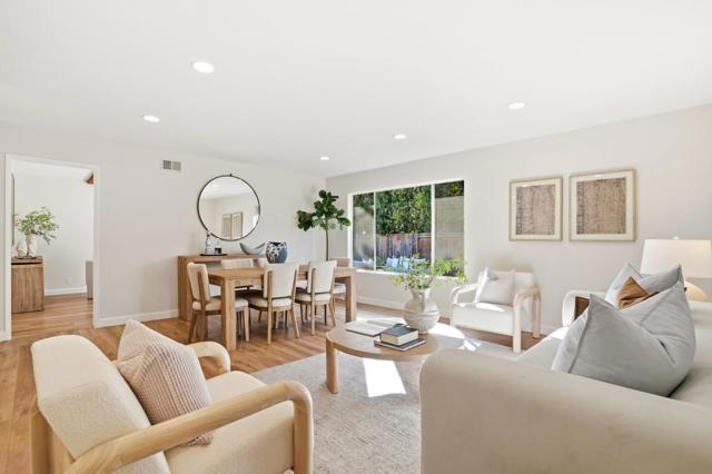 Beautifully maintained 3-bed, 2-bath home in a desirable Mountain View neighborhood just moments from Google. This 1,302 sq ft residence sits on a 5,856 sq ft lot & offers a bright, functional layout w/ abundant natural light throughout the day. A fenced front yard provides privacy, while low-maintenance landscaping & interlocking concrete pavers enhance both the driveway and backyard. The backyard is designed for easy upkeep & outdoor enjoyment, featuring a patio outlet ideal for working or relaxing outside. Inside, the home offers a versatile layout w/ a separate family room and a thoughtfully separated kitchen and dining area, ideal for entertaining. Vinyl floors with a hardwood finish and tile flooring add durability, and a cozy fireplace creates a welcoming living space. The private primary bedroom includes generous closet space, w/ ample storage throughout the home & garage. Major upgrades include newer plumbing & sewer lines, HVAC, roof, & lighting. The kitchen features quartz countertops, a gas range, dishwasher, and eat-in dining area. Both bathrooms are beautifully maintained. Additional highlights include close proximity to nearby daycare options, & location within the Mountain View Whisman School District. Close to parks, shopping, dining, & major commute routes.