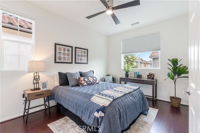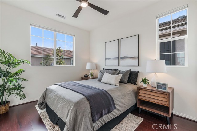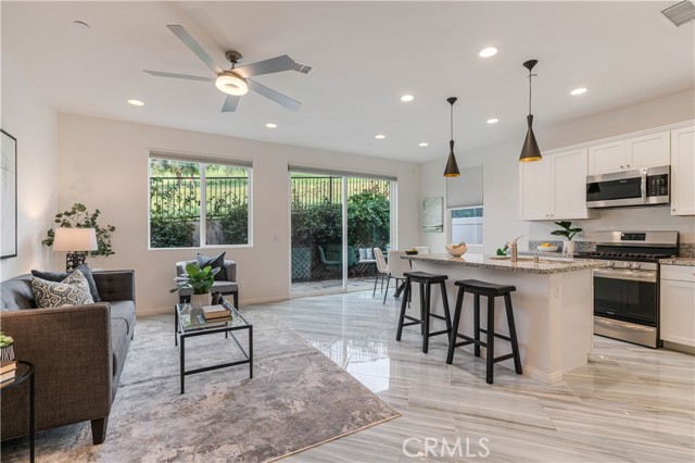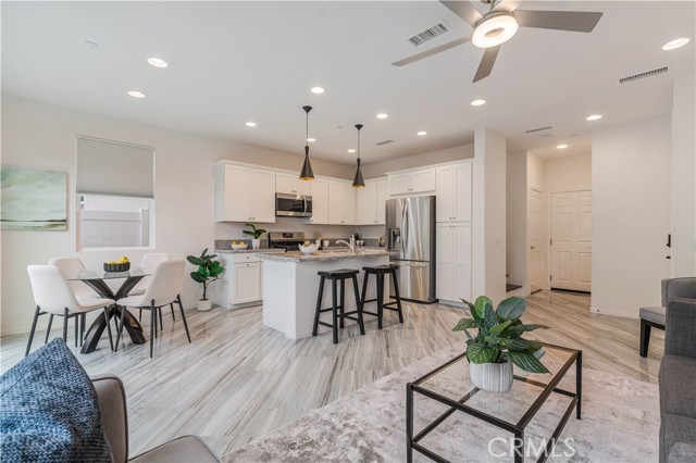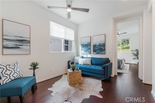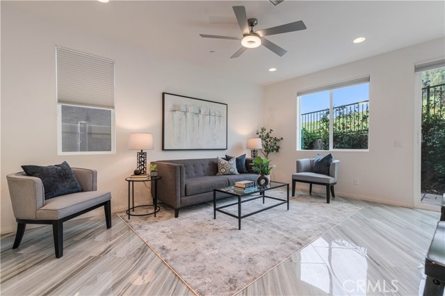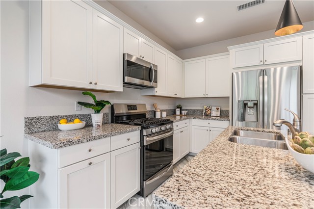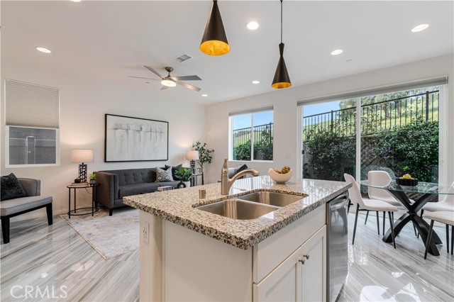Beautiful move-in ready single-family residence located in the heart of West Hills! Built in 2018 by D.R. Horton, this newer construction home offers 3 Bedrooms, 2.5 Bathrooms, and a private attached 2-car garage in an exclusive, well-maintained community. Upon entry, the main level showcases a modern open-concept floor plan designed for both comfortable daily living and effortless entertaining. The spacious living area flows seamlessly into the stylish Cook’s Kitchen featuring a large granite island with separate eating nook, stainless-steel appliances, white Shaker-style cabinetry, upgraded custom tile flooring, and abundant storage. A convenient Powder Room and oversized under-stair closet provide additional functionality. Upstairs features upgraded dark stained wood floor plus two spacious Guest Bedrooms share a remodeled Full Bathroom with tub. A versatile Loft at the top of the stairs functions perfectly as a home office nook, playroom, or cozy TV retreat. The dedicated Laundry Room includes side-by-side washer and dryer plus additional utility storage. The impressive Primary Bedroom Suite offers beautiful hillside views of the Chatsworth Nature Preserve, a large walk-in closet, and a private Bath with dual vanities, deep soaking tub, and separate shower. The private backyard is thoughtfully landscaped with paver tiles, drip irrigation and space to entertain. Energy-efficient features include a paid solar panel system with Tesla Powerwall 3 battery storage, tankless water heater, and built-in EV charger in the attached garage with newer epoxy floors. Residents enjoy access to a 13,000 sq. ft. private park with picnic table, playground area, and ample guest parking. Ideally located minutes from excellent grocery options, premier shopping and dining at Westfield Topanga & The Village and outdoor recreation at Chatsworth Park for trails and hikes. Don’t miss this exceptional opportunity to own a turn-key home in a fabulous West Hills community!