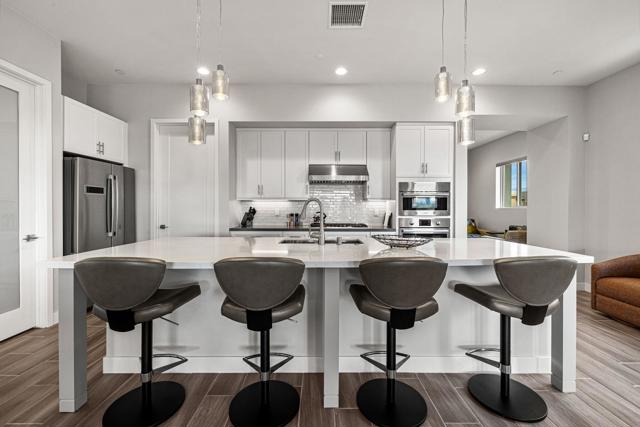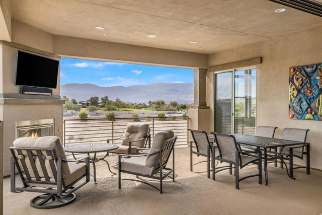 Palm Desert | The Retreat at Desert Willow - Residence Four - Enclave Model | South-Facing Mountain Views - Welcome to The Retreat at Desert Willow -- the epitome of desert luxury living. This rarely available Residence Four Enclave has been gently lived in part-time and is ideally situated on the premier south side of the community, capturing panoramic mountain views. Step inside your private-elevator-accessed penthouse, the largest floor plan offered, spanning nearly 2,600 sq. ft. with 3 bedrooms and 3 bathrooms. A true indoor-outdoor experience awaits with dual retractable glass sliders opening to an impressive 600-sq.-ft. wraparound veranda -- complete with a sleek fireplace and multiple seating and dining areas, all framed by dramatic mountain vistas. Inside, elegance meets functionality with porcelain plank flooring, surround sound throughout, and a chef's kitchen featuring Bosch stainless-steel appliances, a wine refrigerator, custom tile backsplash, and quartz countertops. Modern light fixtures, recessed lighting, and designer window coverings complement every space. Additional upgrades include a whole-home water softener, epoxy-finished garage with custom storage, tankless water heater, and more. As a resident of The Retreat, you'll enjoy exclusive membership to Desert Willow Golf Club, included with HOA dues -- plus access to resort-style amenities and a sophisticated, low-maintenance lifestyle. Welcome home to The Retreat -- where elevated living meets effortless luxury.
