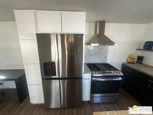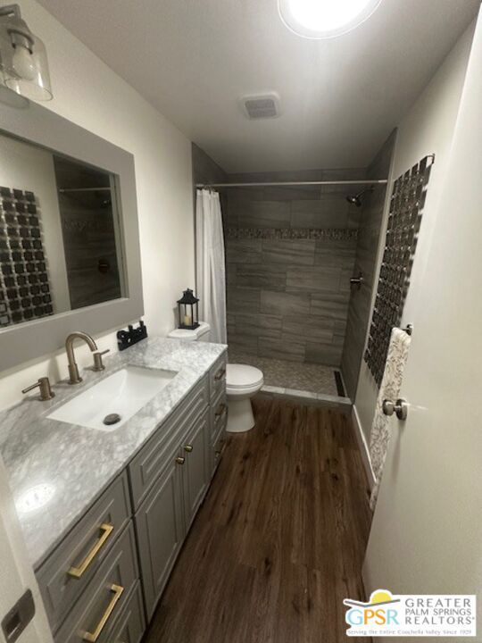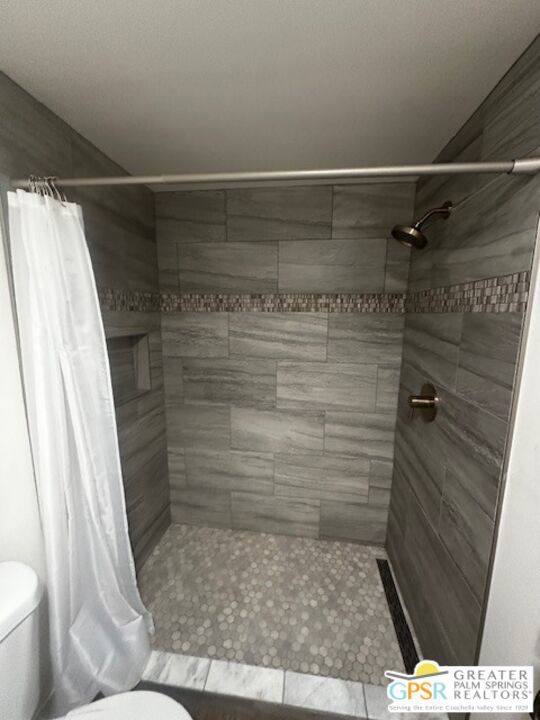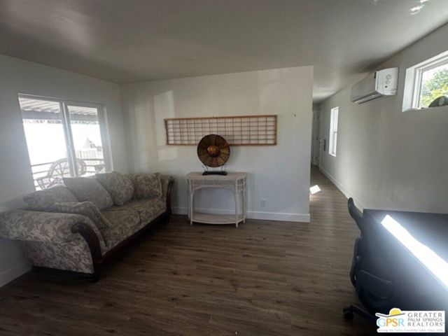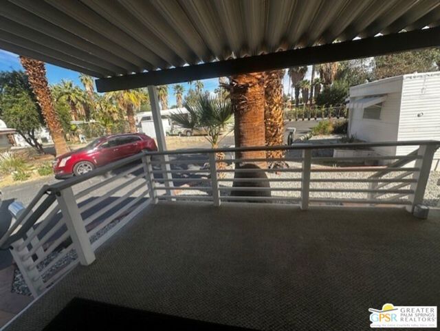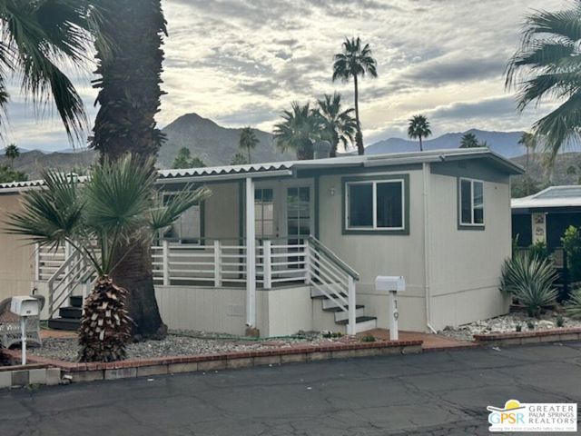 Tastefully renovated 2-bedroom, 1-bath home ready to move in. All new kitchen, bathroom, flooring, and ceiling insulation. Includes 2 mini splits, one in the living room and the other in the bedroom. Oversized patio with an east-facing view. 8-foot side yard for a potential garden and space for a shed at the end of the rear yard. Carport behind the patio in the rear, which may accommodate 2 cars depending on their size. Vinyl flooring throughout. Premium materials and design. Each room features a design element, such as shiplap and floating shelves in the kitchen. The bathroom boasts a designer custom walk-in tile shower, Carrera marble vanity, and a custom mirror. Additional features include tall baseboards, Craftsman casing, and LED lighting. Located in a 55 and older community. Community amenities include a pool, hot tub, shuffleboard tournaments, ping-pong, pool table, and card table. Tramview is a 55+ senior community conveniently situated between Palm Springs, Rancho Mirage, and other desert cities, with the airport and train station nearby.