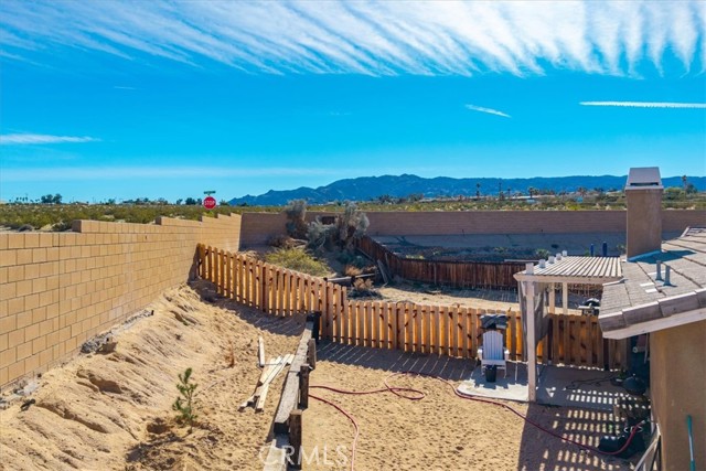 Welcome to Turtlerock! This single-story home offers 3 bedrooms, 2 bathrooms, and a bonus office space with beautiful built ins that can be used as a fourth bedroom. Situated on a corner lot, this gives you a huge backyard space, big enough for a pool, park your RV and even covered patio space for outdoor entertaining! There's a cozy fireplace and more built in shelves in the large living room off the kitchen which gives the space a feeling of the open flow concept. There’s also a separate dining area for entertaining guests. Laundry is located inside your home instead of the garage space, and speaking of garages, there is an oversized attached 2 car garage, accessible from inside the home. All bedrooms are spacious and the primary has its own en-suite bath with soaking tub, separate shower, and walk in closet! Located in the Turtlerock development of Twentynine Palms, it has a very low HOA that includes a professionally managed septic system, and general maintenance of the common areas including the landscaping of the outer perimeter, it is also well know for their covered front porches and a functional floor plan that gives you plenty of living space. Recent updates include interior paint, partial roof replacement, and an updated A/C duct system. Newer light and plumbing fixtures give it a more updated feel as well. And it's all located within minutes to the front entrance to the 29 Palms Marine Corp Base, Joshua Tree National Park, and the up and coming downtown 29 Palms area for shopping and restaurants. Whether this will be your first home, or an investment property, it will be hard to pass up this amazing home!