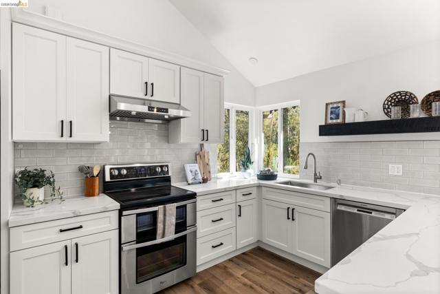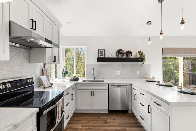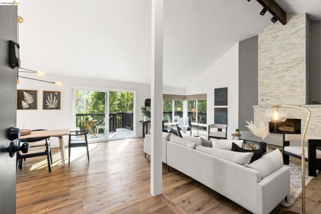 Enter into your own private retreat in the Oakland Hills' Thornhill neighborhood. Anchored by an oversized stone fireplace, the light-filled great room sets the tone for elegant leisure, with living areas flowing gracefully from room to room. An abundance of windows welcome in the verdant surroundings throughout the main floor, with a welcoming multi-level deck off the dining area that beckons for morning coffee or impromptu al fresco gatherings. The wonderfully-updated kitchen features stainless steel appliances and a breakfast bar next to a picture-perfect sitting room, while a secluded loft nook overlooks most of the main floor. Direct garage access from this level is an added convenience. Finally, a bedroom with direct exterior access rounds out the main floor’s offerings. Downstairs, find an enviable primary suite with updated bath, as well as two more bedrooms, laundry and a remodeled full bath, as well as direct access to the back deck structure. On the lowest level, accessible from the deck, find your bliss with a lounge, half-bath, and dry sauna room. Perfection.