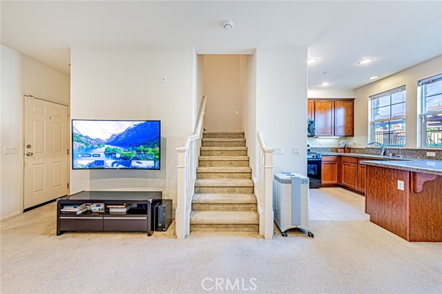 The first floor features carpet flooring throughout, a spacious living room, and an open-concept dining and kitchen combo—perfect for both everyday living and entertaining. A convenient half bathroom is located downstairs, along with direct access to the 2-car garage just off the kitchen.