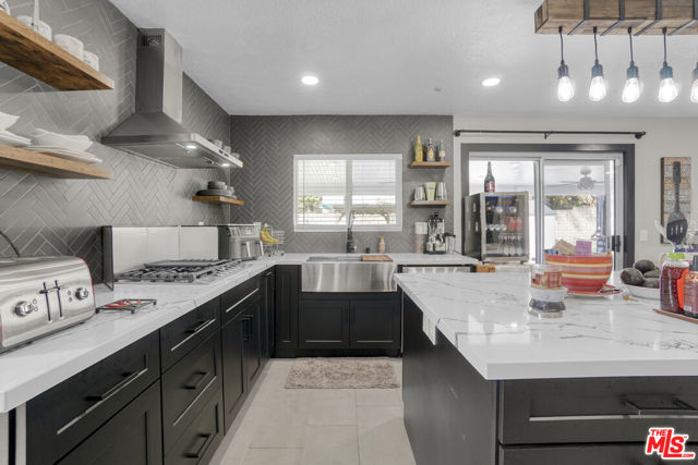 Welcome to your dream home, ideally situated in the highly desirable East Highland community. Enjoy near-zero power bills thanks to a robust, 33 panel, high-producing solar system already installed, owned and paid off. This beautifully renovated 5-bedroom, 3-bathroom residence offers 2,244 square feet of thoughtfully designed living space where modern sophistication meets everyday comfort. From the moment you arrive, pride of ownership and designer detail are evident. Step inside to a light-filled open-concept floor plan enhanced by sleek new luxury flooring, fresh interior paint, recessed lighting, and a stunning custom accent wall that adds warmth and architectural interest. The layout has been carefully curated to create seamless flow between living, dining, and entertaining spaces, making the home feel both expansive and inviting. The chef's kitchen is truly the heart of the home. Designed for both function and style, it features elegant quartz countertops, brand-new stainless steel appliances, custom cabinetry offering ample storage, and a striking designer tile backsplash that adds texture and character. Whether preparing everyday meals or hosting gatherings, this kitchen delivers both beauty and performance. All three bathrooms have been fully remodeled with spa-inspired finishes. Enjoy modern vanities, upgraded fixtures, contemporary lighting, and beautifully tiled shower and bath surrounds that create a refined, luxurious atmosphere. Every detail has been selected with comfort and timeless appeal in mind. The five generously sized bedrooms provide flexibility for growing families, multigenerational living, guests, or dedicated office and creative spaces. The primary suite offers a peaceful retreat, thoughtfully designed for rest and relaxation. Step outside into your private entertainer's backyard. The covered patio with ceiling fans creates the perfect shaded setting for outdoor dining and year-round enjoyment. Expansive hardscaping provides functional gathering space, while low-maintenance artificial turf ensures effortless upkeep and a clean, polished look throughout the seasons. This outdoor space was designed for both relaxation and entertaining on any scale. Energy efficiency adds even more value to this exceptional property. The home features a fully paid-off solar system, offering immediate utility savings with no monthly solar payment a rare and valuable long-term benefit for the next owner. Located within a quiet, established neighborhood this home is also part of the highly regarded Redlands Unified School District. Enjoy convenient access to shopping, dining, parks, and major commuter routes while still maintaining the peaceful charm East Highland is known for. With no HOA, paid-off solar, modern upgrades, and move-in-ready condition, this residence presents an incredible opportunity in one of the area's most sought-after communities. Homes of this caliber rarely become available. Schedule your private showing today and experience firsthand why this East Highland home stands apart.