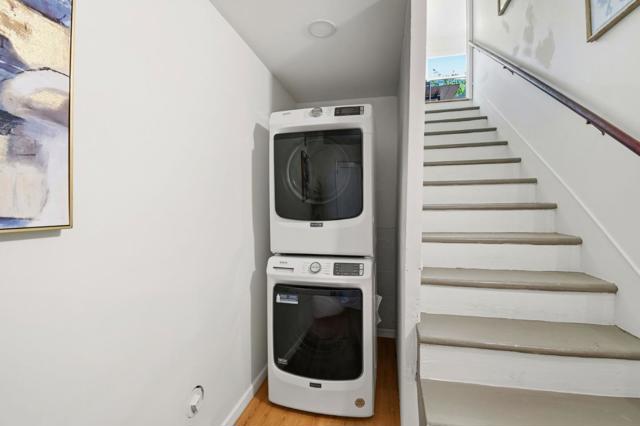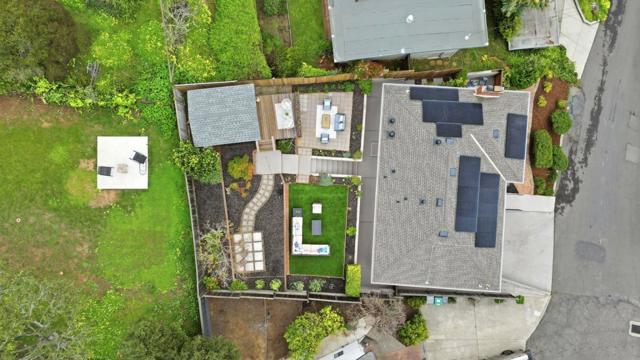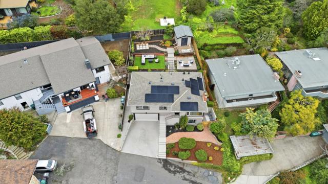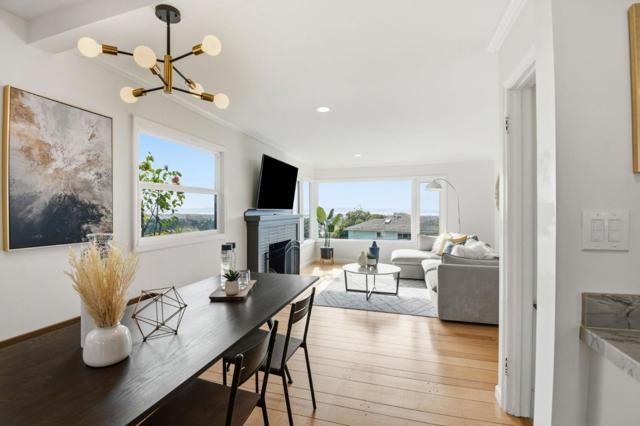 Perched in desirable Redwood Heights and tucked on a quiet cul-de-sac, this beautifully remodeled 4-bedroom, 2-bath home blends modern comfort with sweeping Bay vistas. The main level offers a seamless flow between the living, dining, and kitchen areas, creating an inviting and functional gathering space. Three bright bedrooms and a spa-inspired bathroom complete this level. Airy interiors showcase refinished hardwood floors, along with an updated kitchen featuring stainless-steel appliances, quartzite countertops, and a striking herringbone marble backsplash. The lower level offers exceptional versatility, highlighted by a private bedroom with a cozy wood-burning fireplace, separate entrance, and its own patioideal for guests, extended family, or a dedicated home office. Step outside to a spacious, terraced backyard designed for true indoor-outdoor living. Enjoy a lush lawn, multiple patio areas, and a charming cabin, all overlooking breathtaking Bay viewsyour own private retreat. Additional highlights include Ethernet wiring, NEM 2.0 solar, an EV charger, dual-pane windows, and a tankless water heater. Conveniently located near everyday amenities, with easy commuter access to Highways 580 and 13, and just moments from scenic East Bay parks and trails.