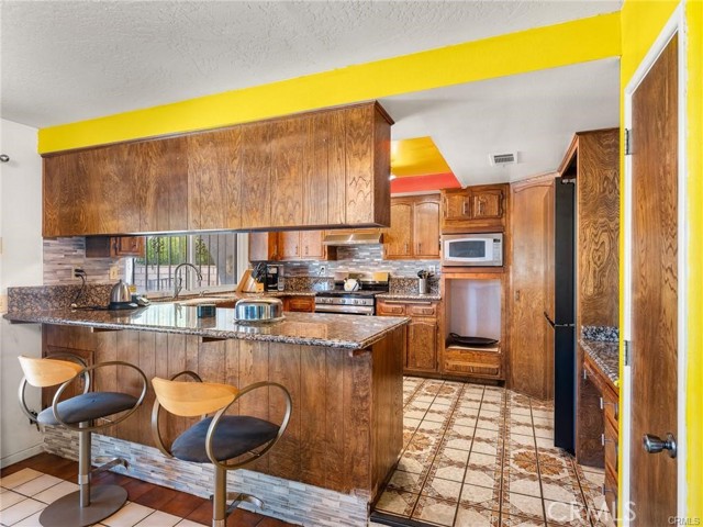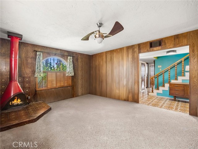 Inside, a classic-style den welcomes you with rich wood paneling, sliding doors, and a cozy wood-burning stove — the perfect space for a home office, library, or quiet retreat. The kitchen is a true standout, featuring granite countertops, double ovens, solid walnut cabinetry, a spacious pantry, and newer appliances that blend function with timeless style.