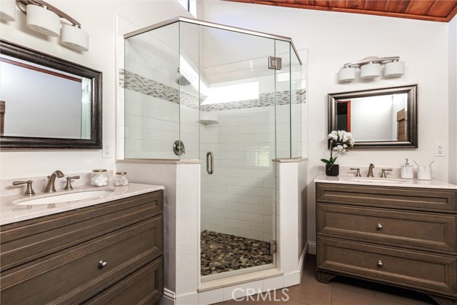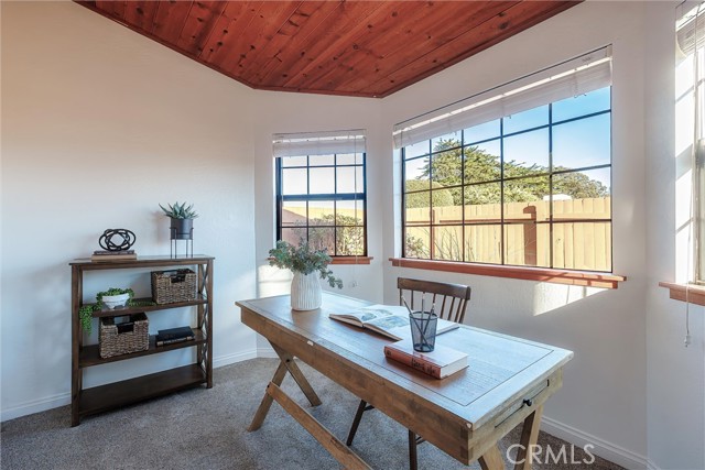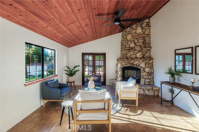 The versatile floor plan features formal living and family rooms anchored by soaring vaulted wood ceilings and custom oversized windows. Abundant natural light pours through multiple skylights, beautifully illuminating the rich character of the Old World Fir wood flooring throughout. The updated kitchen is a chef’s delight, featuring a brand-new cooktop and a dedicated wine refrigerator. With three spacious bedrooms, two bathrooms, and a private office retreat, the home offers a seamless balance of work and relaxation.