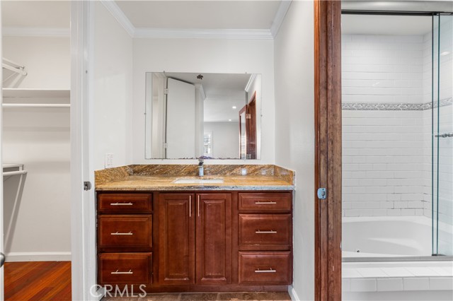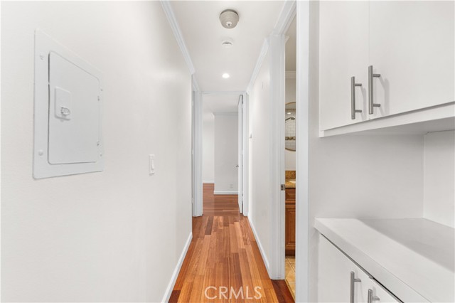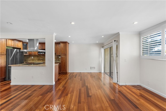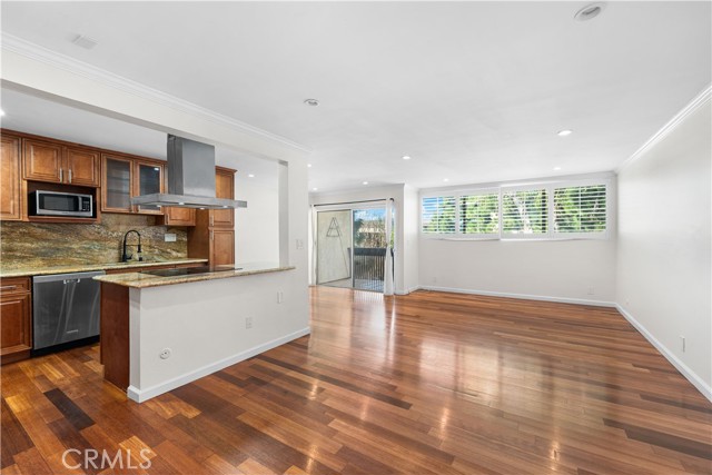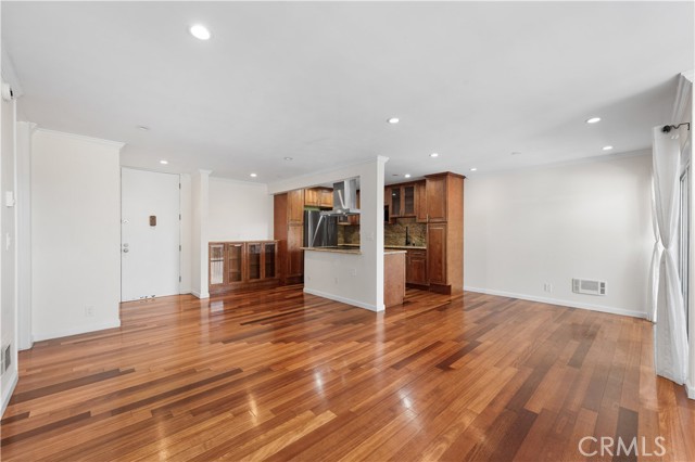 Experience elevated Westside living in this beautifully remodeled top-floor 2-bedroom, 2-bath residence with peaceful greenbelt and treetop views. A bright, open layout filled with natural light showcases cherry hardwood floors, crown molding, and recessed lighting throughout. The updated island kitchen features stainless steel appliances, café-toned shaker cabinetry, granite countertops, and backsplash, flowing seamlessly into the living and dining areas with a built-in wine cabinet. Both bathrooms are tastefully upgraded with granite counters, subway tile, and frameless glass shower doors. The spacious primary suite offers a walk-in closet, jetted tub, and built-in full-length mirror. Additional highlights include a nearby laundry room and two side-by-side parking spaces next to the elevator. Located in prime Culver City near Silicon Beach, Playa Vista, Downtown Culver City, LAX, the Expo Line, and top shopping and dining, with Fox Hills Park just a short walk away. The pet-friendly Pines community offers resort-style amenities, including a heated pool, fitness center, saunas, clubhouse, and Amazon lockers. HOA dues include water, trash, and insurance, and residents qualify for Culver City Unified School District.