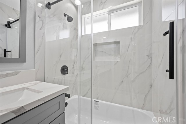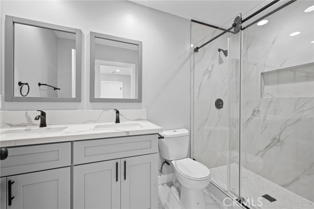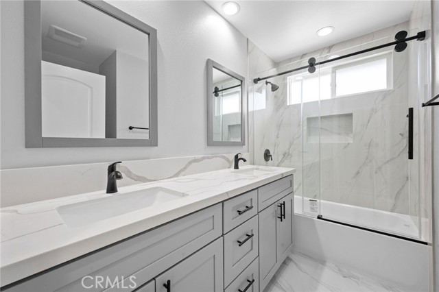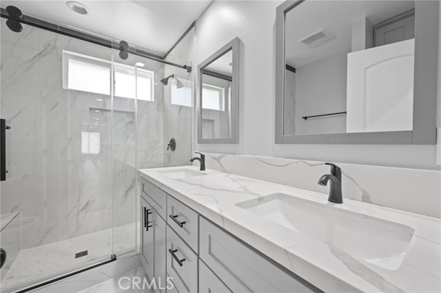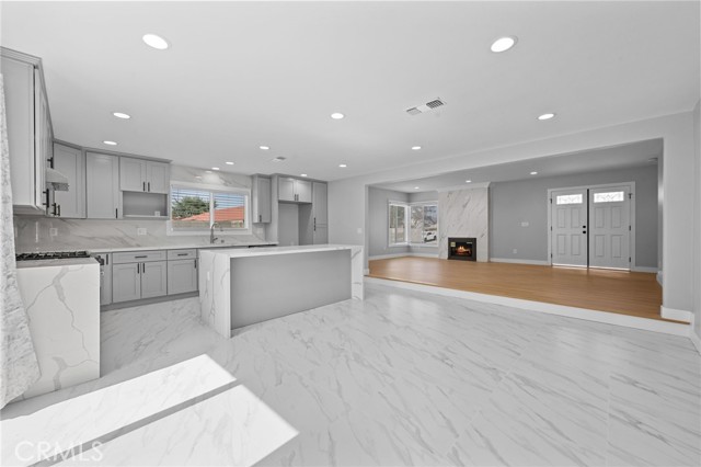 The interior features waterproof laminated flooring throughout, creating a seamless and contemporary feel. The fully remodeled bathrooms showcase designer tile work and elegant quartz countertops. The updated layout offers spacious bedrooms and a functional flow ideal for families or multi-generational living.