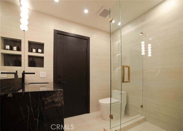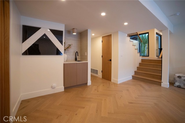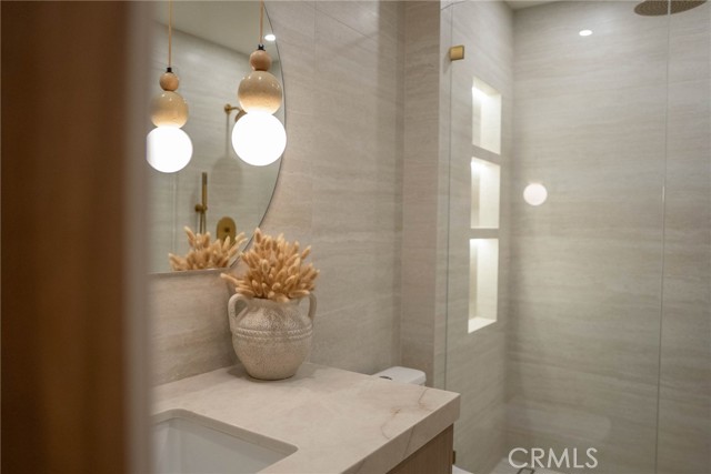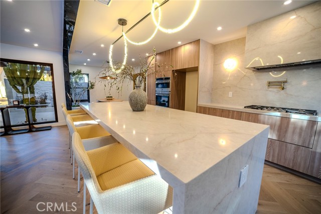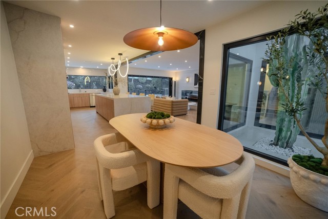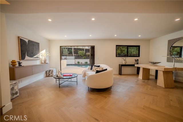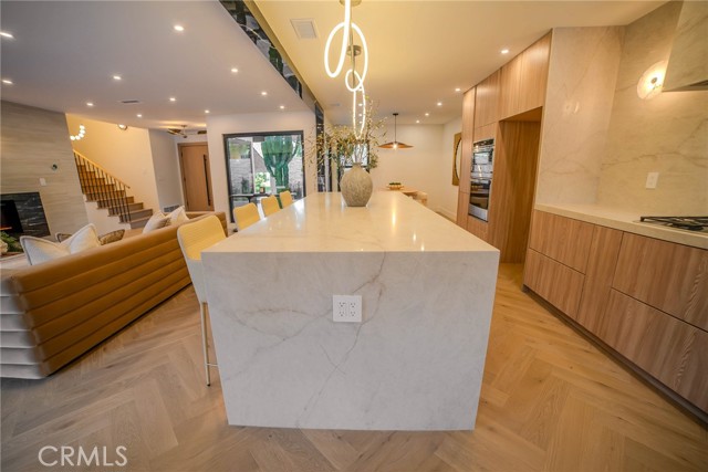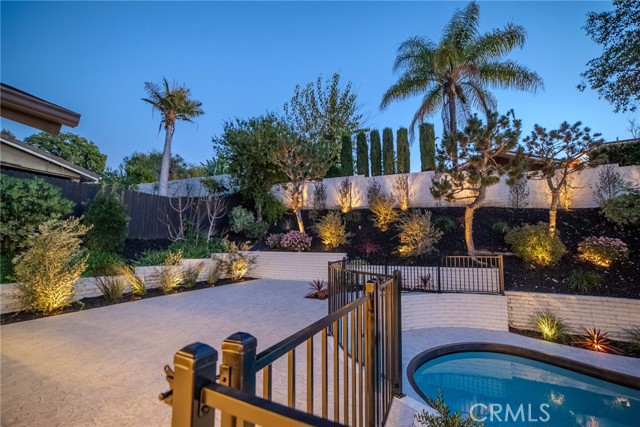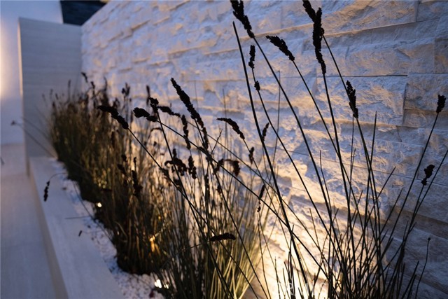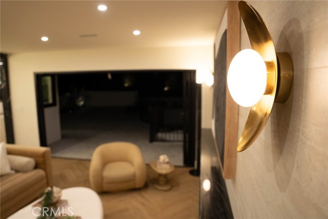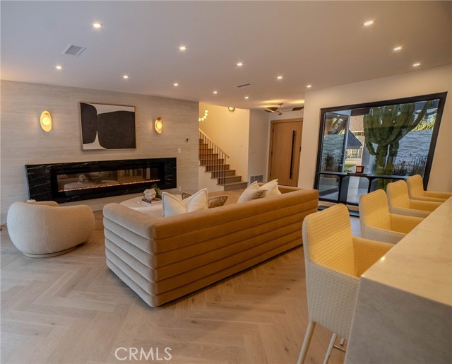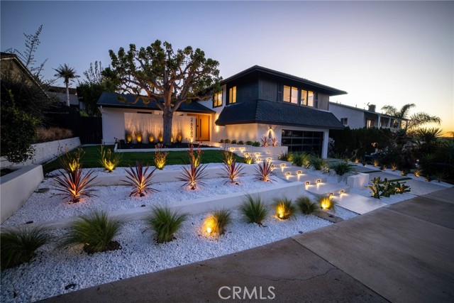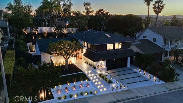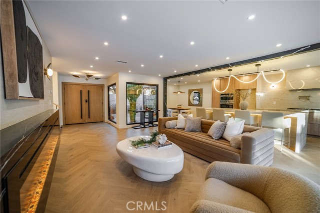 Rarely does a home come along that inspires the senses and elevates perceptions of what modern living can be. This is not simply a renovation — it is a complete re-imagination of lifestyle, executed with intention and precision. Designed with rigorous engineering plans and permits, this transformation stands confidently in a category all of its own. From the moment you arrive, curated landscape lighting guide you through sculpted grounds. Clean architectural lines and a majestic illuminated cactus create a setting that feels both organic and iconic. The arrival alone sets the tone: this is luxury resort living at home. Inside, stunning herringbone wood floors anchor the space in warmth and craftsmanship. A dramatic floating fireplace wrapped in striking stone serves as a sculptural focal point, reinforcing the home’s architectural presence. At the center, a spectacular kitchen unfolds around an expansive 10+ foot island — a true architectural statement designed to evoke connection. European-style frameless cabinetry, Miele gas cooktop, and refined finishes create a space equally suited for elevated entertaining and everyday life. Multiple expansive folding patio doors blur the boundary between indoors and out, opening to a private backyard retreat complete with pool and lush lit landscape. The result is seamless California living - elevated. Offering 4 bedrooms and 4 full bathrooms, plus a generously sized flex space ideal for a bonus room, office, media lounge, or potential fifth bedroom, the layout adapts as life evolves. Over 8200 sqft lot, this permitted renovation added an additional bedroom and full bath, indoor laundry, and reimagined the plan for openness, functionality, and modern flow. The primary spa-inspired bathroom rivals luxury resorts with opulent design, warm wood accents, curated lighting, massage sprays, and a recessed rain shower. Every detail — from smooth drywall to precise mitered edges — quietly communicates quality. Solid white oak fluted interior and exterior doors, vast contemporary stonework, upgraded plumbing and electrical systems with new panel, and a sleek black glass and aluminum garage door reflect just a touch more of the many upgrades that will please. Reminiscent of custom homes in premiere OC communities like Newport and Laguna Beach, this residence delivers an elevated and opulent lifestyle within reach. Lavish yet livable. Refined yet welcoming. This is more than a home. It is a experience. It's your next chapter.