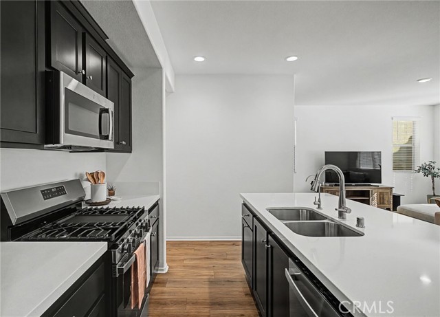 Located within the desirable Copper Skye community, this upgraded Tri Pointe Homes residence blends modern design | thoughtful builder selections | and everyday functionality. The open-concept layout creates a natural flow between the great room | dining area | and chef-inspired kitchen with a AquaTru Water filtration system in kitchen Sink, featuring Upgraded cabinetry | Quartz countertops | Stainless steel appliances | Gas range | and Designer fixtures — ideal for entertaining or relaxed day-to-day living. Premium WPC flooring runs through the main living areas, complemented by clean interior paint selections and modern interior doors that give the home a fresh | contemporary feel. Upstairs, the Private Primary Suite offers a comfortable retreat with dual vanities | Glass-enclosed shower | and Upgraded finishes, while the additional bedrooms provide flexibility for guests | Workspace | Additional highlights include ceiling fan prewire package | Upgraded lighting selections | Interior finish upgrades | Energy-efficient features | and a SOLAR system designed to support long-term efficiency Thoughtfully designed and move-in ready, this home offers the right balance of Comfort | Style | within one of the Inland Empire’s growing communities.