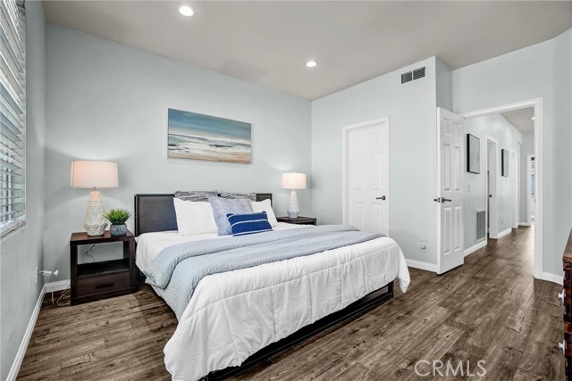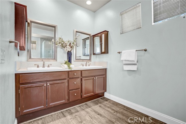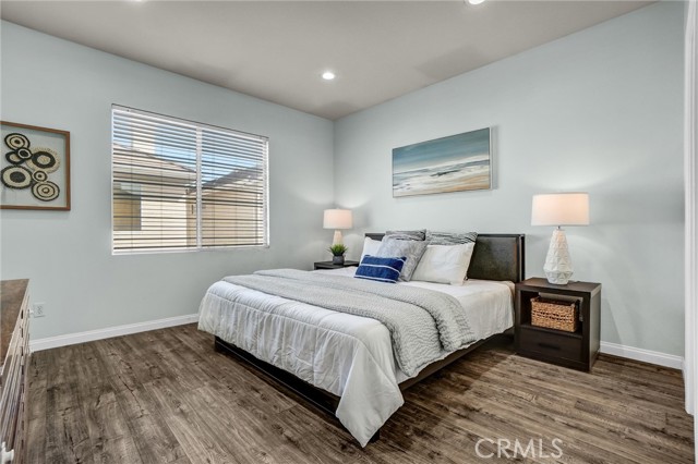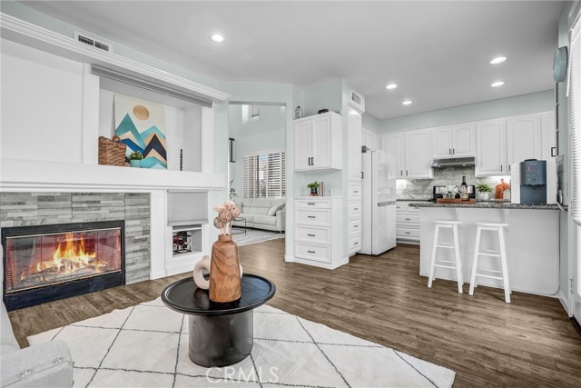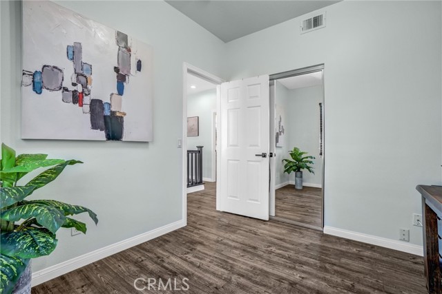 FABULOUS LAYOUT AND SUPERB SETTING! Absolutely spectacular property located in the Lyon Gallery enclave within the prestigious Hillsborough Collection gated community of La Mirada. An incredible opportunity to live in this exclusive neighborhood! Featuring three bedrooms and 2.5 bathrooms, this home is perfectly situated in a quiet location and thoughtfully designed for today’s lifestyle with seamless flow throughout. From the moment you arrive, the fantastic curb appeal reflects true pride of ownership. Move-in ready with opportunity to add your personal touches. A grand entry with dramatic cathedral ceilings welcomes you into an open-concept floor plan filled with an abundance of natural light. The inviting living room opens to the formal dining room, creating a wonderful space for entertaining family and friends. A convenient downstairs half bathroom adds functionality. Beautiful waterproof laminate flooring runs throughout the home. The comfortable family room features a fireplace, media niche, and custom cabinetry — perfect for gathering and relaxing. The well-appointed kitchen is upgraded white cabinetry, granite countertops, a beautiful tile backsplash, and stainless steel appliances. The spacious and inviting primary suite offers a resort-style bathroom with dual sinks, a soaking tub, separate shower, and walk-in closet. Plantation shutters, recessed lighting, and upgraded light fixtures enhance the home’s appeal. A handy upstairs laundry room adds everyday convenience. Step outside to a generously sized backyard ideal for outdoor entertaining. Ideally located near the Los Coyotes Country Club and the beautiful Clark Regional Park, this home also offers exceptional convenience with close proximity to everything you need. A rare opportunity in a highly desirable gated community — don’t miss it!