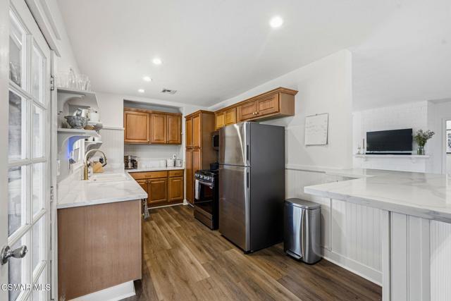 Charming and beautifully remodeled 2-bedroom, 1-bath single-story home nestled at the end of a quiet cul-de-sac in desirable Northridge. Offering approximately 1,030 sq ft of living space on a generous pie-shaped lot of over 7,000 sq ft, this property provides both comfort and room to grow.The expansive backyard features a large grass area, a thriving garden with raised beds, and exciting potential for an ADU. Inside, the home showcases a thoughtfully updated kitchen and stylish vinyl plank flooring throughout, creating a warm and cohesive feel.A spacious enclosed patio at the rear of the home offers additional versatile space for relaxing or entertaining. The tastefully landscaped yard enhances the inviting curb appeal, while the single-car garage and oversized driveway provide ample parking.Move-in ready and full of charm, this special property blends functionality, outdoor space, and future possibilities in a prime location.