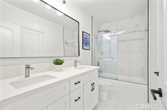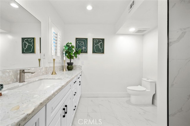 Inside, the interiors strike a balance between modern sophistication and livable luxury. The kitchen is a statement in clean design and functionality, appointed with new appliances, custom cabinetry, and an open configuration that anchors the home’s gathering spaces. Bathrooms evoke a spa sensibility, finished with marble-inspired surfaces, expansive walk-in showers, and a sculptural soaking tub that transforms routine into ritual. Dual entry points provide an added layer of versatility. Ideal for multigenerational living, a private guest retreat, or a creative live/work arrangement. Fresh interior and exterior paint enhance the home’s crisp presentation, delivering a truly turnkey experience.