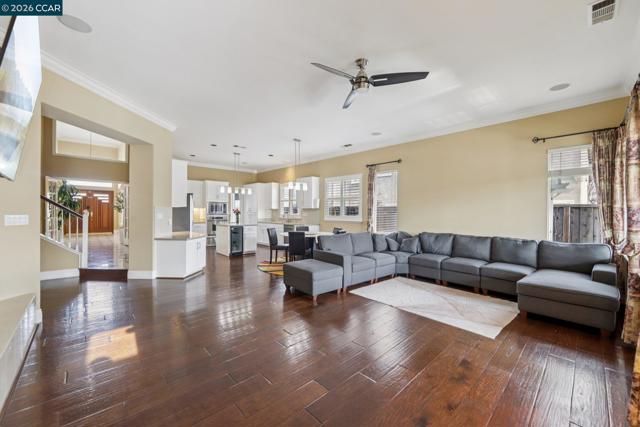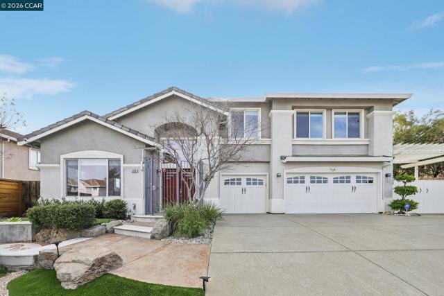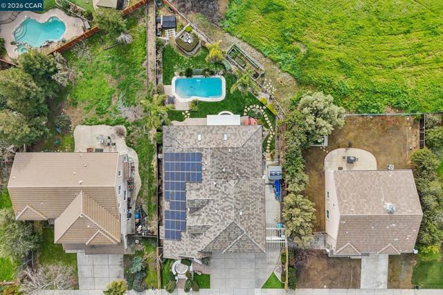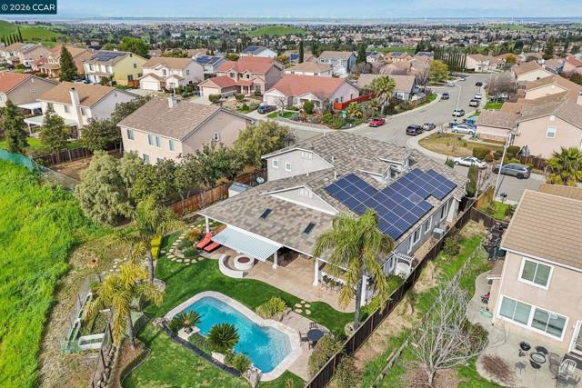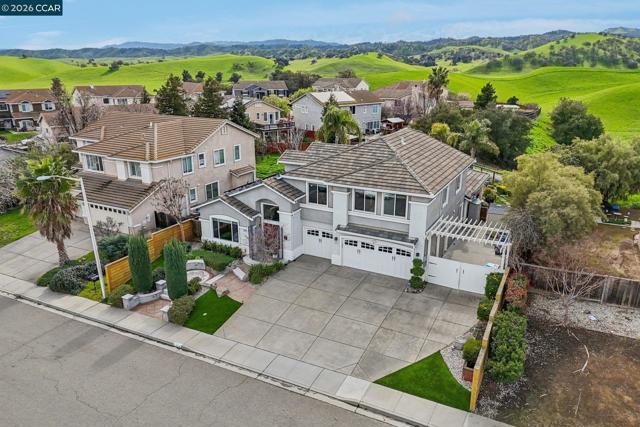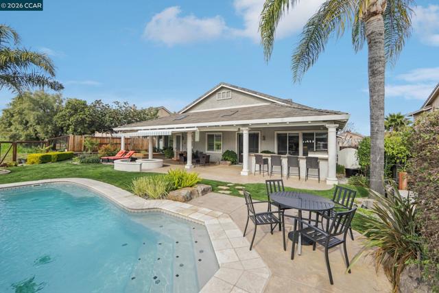 Welcome home to this exceptional property offering privacy, space, and unforgettable views. Backing to open space with no rear neighbors, the backyard is a true retreat where you can take in breathtaking views of Mount Diablo right from your own oasis. Designed for both relaxation and entertaining, the outdoor space features a sparkling pool, a sunken hot tub, and a built-in gas fire pit that creates the perfect ambiance for evening gatherings. The outdoor kitchen makes hosting effortless, while the expansive wood overhang and retractable awning provide comfortable shaded areas year-round. Fruit trees and a charming chicken coop add character and functionality to this incredible backyard setting. The home offers a spacious and inviting open layout with a beautifully updated kitchen that flows seamlessly into the main living areas. The large primary suite is conveniently located downstairs, offering comfort and privacy, along with a versatile den that can serve as a home office, playroom, or additional flex space to fit your needs. Additional highlights, side yard access and a three-car garage, providing ample room for vehicles, storage, or recreational toys. With stunning views, exceptional outdoor living, and a thoughtfully designed interior, this home truly has it all!