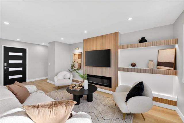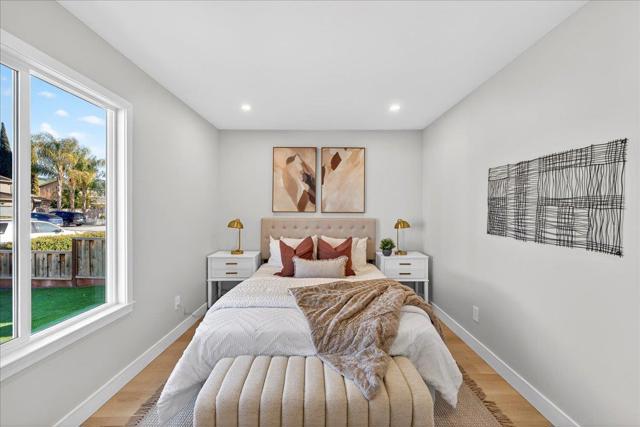Welcome to this fully remodeled charming 4-bedroom, 2-bathroom home in the vibrant city of San Jose. Spanning 1,640 square feet, this residence offers a modern open-concept layout. The heart of the home is the beautifully appointed kitchen, featuring sleek quartz countertops, a spacious island, and stainless steel appliances including a dishwasher, microwave, oven range, and refrigerator. The kitchen seamlessly flows into the family room, creating a perfect space for gatherings and family meals. The home boasts durable laminate flooring throughout, providing both style and ease of maintenance. A cozy fireplace adds warmth and ambiance to the living space, ideal for relaxing evenings. The property is equipped with central air conditioning and heating to ensure year-round comfort. Additional amenities include a convenient laundry area and a two-car garage. This home is situated within the San Jose Unified School District. Experience the best of San Jose living in this well-appointed home, offering both comfort and functionality.