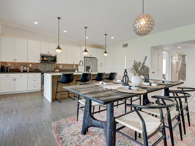 A rare offering in the coveted Indian Wells Village community, where modern luxury meets effortless desert living. This home was renovated down to the studs in 2018 creating vaulted ceilings and modernizing the construction. The 3 bedroom, 2 bath residence is offered fully furnished and has a proven track record as a successful vacation rental/second home, presenting an exceptional turnkey opportunity for both investors and those seeking a refined personal retreat.Perfectly positioned just moments from the world-famous Indian Wells Tennis Garden, this home places you at the center of premier events, dining, and recreation while maintaining a sense of privacy within an intimate enclave of only nineteen residences.Inside, walls of glass and stacking sliding doors seamlessly blend indoor and outdoor living, enhanced by automated blinds and thoughtfully curated designer finishes throughout. The open concept floor plan is both sophisticated and functional, featuring Smart Home Automation, a fully owned 19-panel solar system with Tesla Power wall, Hansgrohe kitchen and bath fixtures, designer wallpaper, and Jonathan Adler automated drapery in both the primary and guest bedrooms.Step outside to your private oasis, where a beautifully designed pool and tongue-and-groove wood patio cover create the perfect setting for relaxation or entertaining under the desert sky.Indian Wells Village stands apart as one of the few HOA communities in Indian Wells that allows short-term rentals with city restrictions, making this property especially valuable. With an OWNED SOLAR system and the low $400/month HOA fee that includes front- rear landscaping and pool maintenance allows for truly effortless ownership.This is more than a home. It is a lifestyle investment in one of the desert's most sought-after locations.