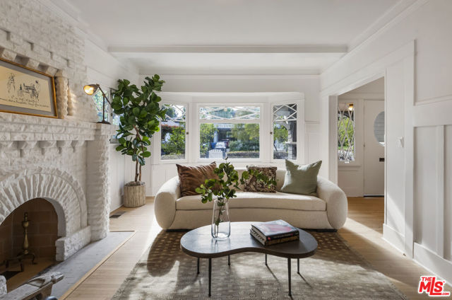 Located on a block renowned for its early 20th century bungalows on a gated expansive privately landscaped lot, this circa 1906 storybook charmer with pool is one of the linchpins of Hollywood Grove: Los Feliz' only Historical Preservation Zone. Newly restored and ready for its next chapter, this home has undergone a thoughtful and luxurious restoration, effortlessly retaining its distinctive vintage ambience while offering bright casual modern style. Meandering walkway leads to front entrance with huge extraordinary wrap around covered porch, with original shingled arches framing the picturesque street view. Old world vestibule opens to formal living room with gorgeous original fireplace, original wainscot, and copious original windows allowing natural sunlight and nature to completely envelop the entire space. Formal dining room with patio French door leads to the chic newly remodeled kitchen: with built-in banquette, new cabinets, new counters, new fixtures and brand-new chef's appliances all overlooking the back and side yards. Also downstairs is a huge third bedroom or family room with separate office alcove areaall opening to the back yard. Upstairs are two more bedrooms and two baths including a sublime primary suite with new tiled bath with separate shower and soaking tub plus separate office nook. The resort like back yard is a 10: a stunning sanctuary for relaxingand entertaining with huge lagoon-style swimming pool, dramatic waterfall, and cozy gazebo. Long driveway and detached two car garage for parking or hanging out. Highlights include original: hardwood floors, moldings, doors, windows and exterior wooden shingles plus new plumbing, electrical and roof. Amazing area walkable to Franklin Village, Oaks Gourmet, Gelson's, Lazy acres and Griffith Park. Superb!