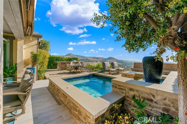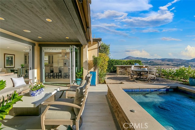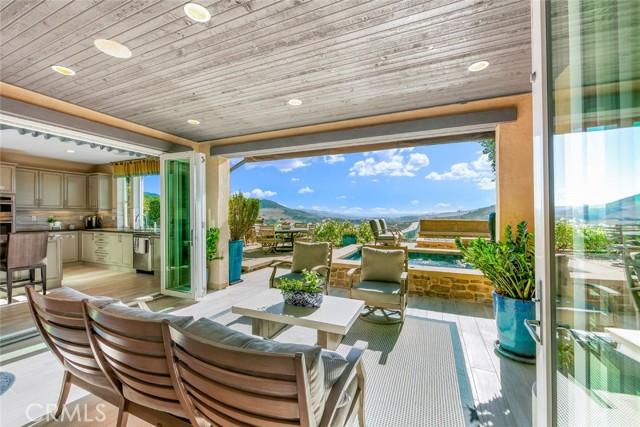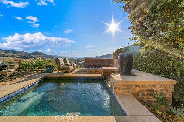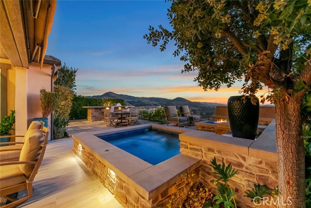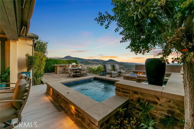 Welcome to one of Rancho Mission Viejo’s most remarkable view homes! An architectural masterpiece in the exclusive Ventana enclave in the award-winning community in Rancho Mission Viejo. This residence is designed for both grand entertaining and everyday luxury. The backyard is a private retreat featuring a custom-designed jacuzzi with a rare standing zone for a full-body hydro massage, a tranquil waterfall feature, gas fire pit, built-in BBQ with full appliances, and generous gathering space. All set against sweeping views and refreshing ocean breezes. The great room impresses with a 16-foot sliding glass door that seamlessly connects to the covered California Room, complete with fireplace, designer ceiling paneling, and a motorized retractable awning extending 16 feet for instant shade at the touch of a button. Inside, the kitchen is a chef’s dream, a built-in refrigerator, wine refrigerator, abundant cabinetry, and an oversized island invite both creativity and connection. The main level includes a full bedroom and bath, while upstairs offers a spacious loft and three additional bedrooms. The primary suite is a true sanctuary with panoramic views and a private balcony adorned with custom ceiling paneling. Additional premier features include epoxy-coated garage flooring with built-in cabinets, plantation shutters, custom closets, surround sound, and thoughtfully designed built-ins throughout. This home delivers the perfect balance of architectural design, modern comfort, and resort-style living, a rare find in one of Rancho Mission Viejo’s most coveted enclaves. Exclusive to Rancho Mission Viejo residents are all amenities in the Villages of Sendero, Esencia, Rienda and future Villages. There are community amenities for all from breath-taking resort-style pools and spas, Esencia school K-8, community farms, fitness centers, guest house, putting green, bocce ball courts, tennis and pickle ball courts, playgrounds, coffee shop, fire pits, an arcade and so much more!