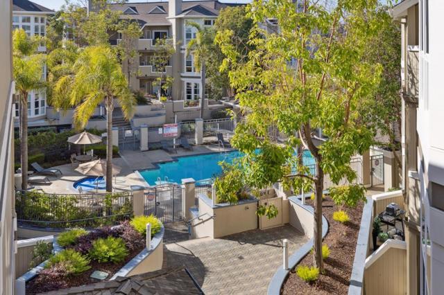 Beautiful luxury executive style condo in newer high-end Meridian Bay Community built in 1999! Enjoy one level living with resort like pool and spa, clubhouse with full kitchen and gym. Quiet inside location in the complex and good orientation bringing natural lighting to bedrooms. Contemporary open floor plan with high ceilings. Living room with remodeled fireplace. Elegantly remodeled open kitchen with granite countertops and breakfast bar. Spacious bathrooms. LED recess lights and dual pane windows. Secure building with elevators and 2 deeded parking spaces. HOA pays water, garbage, earthquake insurance. Centrally located on the Peninsula and steps away from various amenities, from shopping, gourmet world cuisine, to Active-life style recreation parks. Easy commute to San Francisco, East Bay and Silicon Valley with access to 101 and 92 freeways.