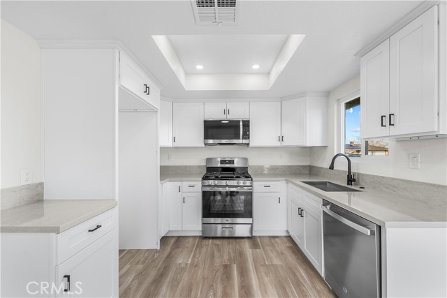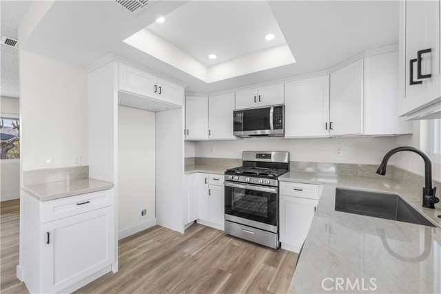 Enjoy brand-new dual-pane windows, fresh interior and exterior paint, and stylish LVP flooring that flows seamlessly through the home. The fully remodeled kitchen showcases new cabinetry, stunning Taj Mahal quartz countertops, and new stainless steel appliances. The bathroom has also been updated with new cabinets and modern finishes. Additional upgrades include new LED lighting throughout for a bright, energy-efficient living space.