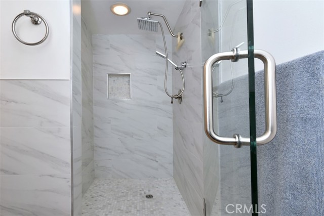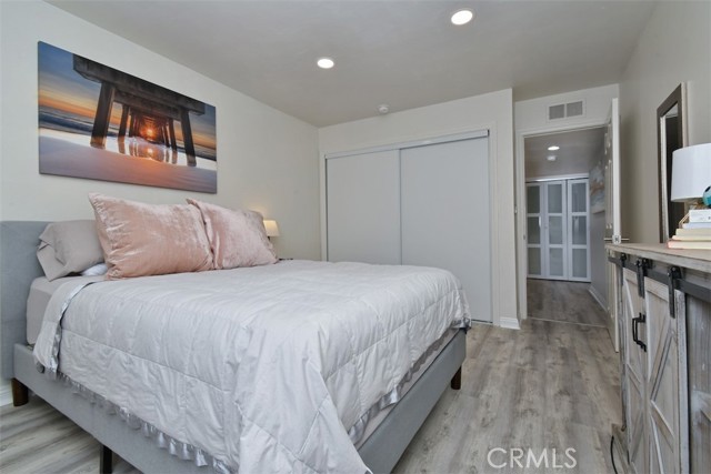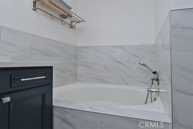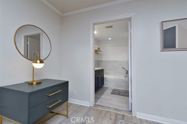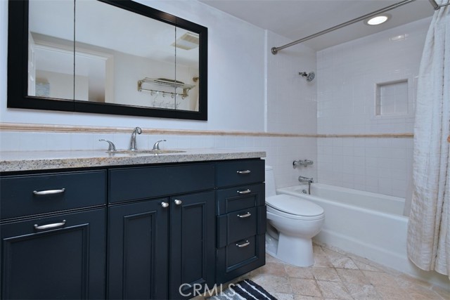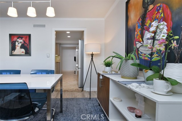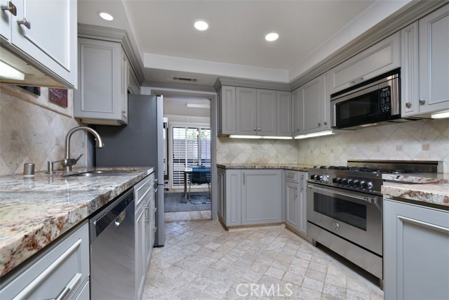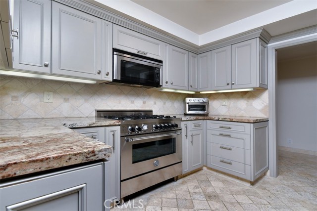 Tucked toward the back of the highly desirable Magnolia Tree Villas, this Valley Village unit offers a rare combination of privacy, space, and practicality that is hard to find at this price point! With no shared walls on either side, no neighbor below and a square footage larger than most, the spaciousness and privacy in this unit is a genuine gem of a find. Enter into a large and inviting living room, anchored by a cozy gas fireplace and with access to a long, private balcony. An adjacent dining area features a stylish light fixture and ample space for entertaining. The oversized master suite boasts a walk-in closet, direct access to a second private balcony, and an en suite bath with soaking tub and a separate stall shower. The second bedroom is adjacent and includes a wall-to-wall slider closet. Both the hall and primary bathrooms feature quartz countertops, Mediterranean style floor tiles and updated vanities. The remodeled kitchen boasts a Bertazzoni range, well regarded among serious home cooks as a top of the line Italian brand, as well as stainless steel appliances, granite countertops, elegant backsplash and plenty of storage. Enjoy an extra alcove off the kitchen that functions naturally as a home office, exercise area, breakfast area or flex space. Fresh paint, newer vinyl floors, recessed lighting, elegant hardware and white plantation shutters give the space a calm, modern feel throughout. Additional highlights include a Nest thermostat, a newer HVAC system and side by side laundry machines that are less than 1 year old. The assigned corner parking spots are near the stairs which are adjacent to the unit for seamless transition to and from your car. And since the unit is on the first floor, no elevator required! The assigned parking area also has two large, private storage cabinets. The complex itself feels like a Hawaiian resort sanctuary with tropical landscaping, mature trees, colorful planters, meandering pathways, and a resort like pool area with a hot tub and multiple poolside chaise loungers. It also includes a well stocked fitness room. Earthquake insurance, ample guest parking, security cameras and water and trash are included in the HOA. Conveniently located in the charming suburb of Valley Village, this unit provides easy access to the famous hills and hikes of Fryman Canyon, the world class dining and shopping at NoHo West and the shops Sportsmen’s Lodge, the Westside neighborhoods and all major freeways and canyon roads.