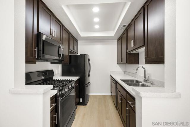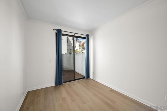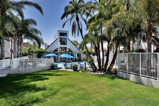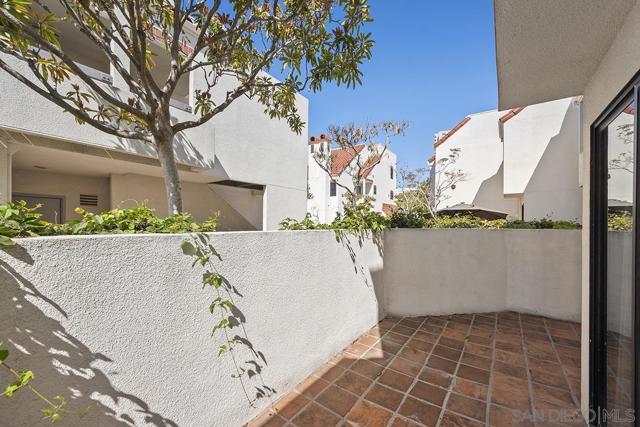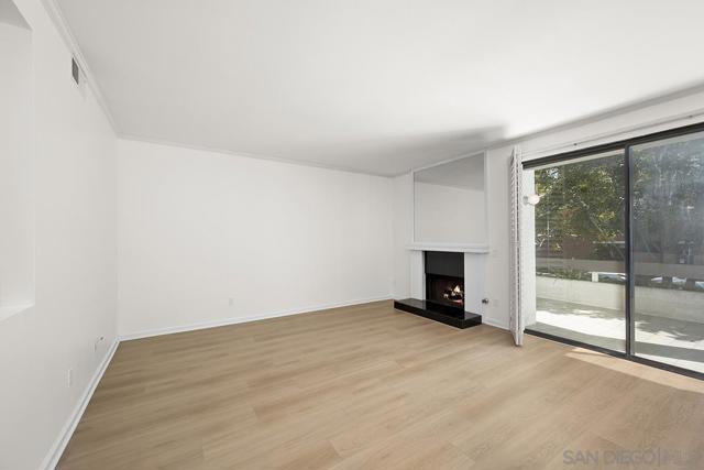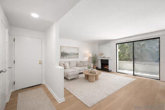 Welcome to this rare, single-level ground-floor residence with 2 bedrooms, 2 bathrooms AND 2 patios! With a bright and open layout and sunlight streaming in from every angle, it’s the kind of home that just feels good the moment you step inside. Enjoy the brand-new “Bentwood Tan” luxury vinyl plank flooring throughout, cozy ambient fireplace, and a “refreshed” kitchen with sleek quartz counter, top-notch Samsung appliances, refaced cabinetry and newer fixtures. The spacious primary suite offers dual closets and an ensuite bath with a step-in shower, while both bedrooms open directly to the patios—perfect for seamless indoor-outdoor living. Other features include LED lighting, a bonus storage closet on the patio, a secure parking space, private storage cabinet and fresh paint throughout. All this in Park Row, one of Downtown’s most charming low-rise communities, known for its lush landscaping, fantastic amenities, and unbeatable walkability. And yes—low HOA dues, too! There is no other development like Park Row in Downtown; beautiful garden-setting with sparkling fountains, a plethora of flowers, trees, real green grass and courtyards to boot. With no elevators, long corridors or hallways; rather “ease of access” walk-up style residences, it offers a serene escape for those seeking the charm of urban living without the high-rise hustle. Nestled beside the historic Pantoja Park, this tranquil community invites you to stroll to The Headquarters, Seaport Village, the Gaslamp Quarter, and the scenic waterfront, with Downtown San Diego's cultural highlights just steps away. Beautifully landscaped grounds enhance the peaceful ambiance, while amenities such as clubhouse, year-round heated pool, and spa create a relaxing retreat. Plentiful visitor parking is an added perk, and additional parking, storage options, bike storage, and an EV charging station are available through the HOA. Embrace the perfect balance of city convenience and peaceful living at Park Row—welcome home!
