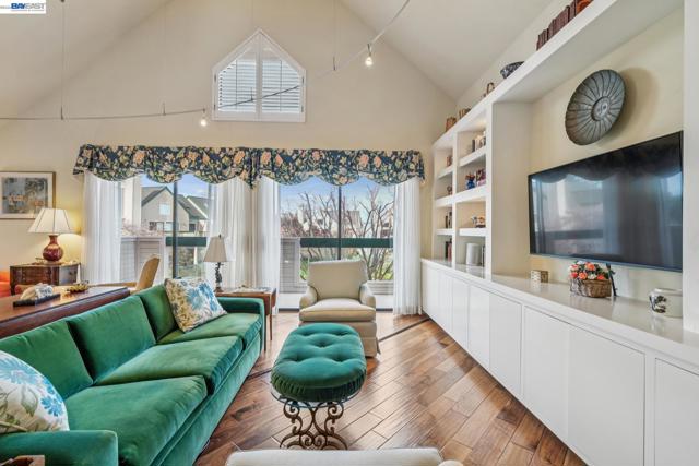 A rare opportunity to own the most distinctive residence in Marina Village. This 2842 sq ft 4BD/4BA home combines 2 separate units – upstairs and downstairs - into one dramatic home with no shared walls, multiple patios, water views, and two garages. The expansive layout includes 2 primary bedroom suites with fully modernized baths and integrated storage. Architecturally designed custom craftsmanship is evident from the moment you enter. A breathtaking spiral staircase of solid Brazilian walnut in a helical design serves as both a sculptural focal point and a functional connection between levels. A separate upstairs entrance opens into the Great Room distinguished by a soaring 18-foot sculptural light installation that echoes the spiral staircase below. This home is steps away from the Marina Village pool and spa and the pedestrian bridge connecting to the San Francisco Bay Trail along the Oakland Estuary. Cross the bridge for access to hundreds of yachts, boat slips and 3 different Yacht Clubs. The Marina Village Shopping Center featuring a grocery store, restaurants and shops is 1/4 mile away. Also nearby is the free Oakland-Alameda Water Shuttle, providing easy access to Jack London Square and ferry connections to San Francisco.