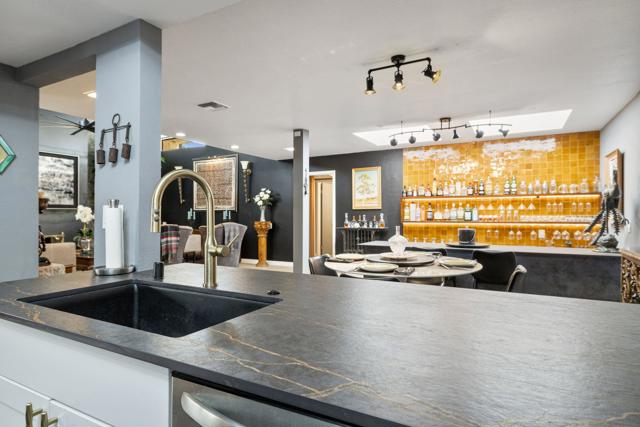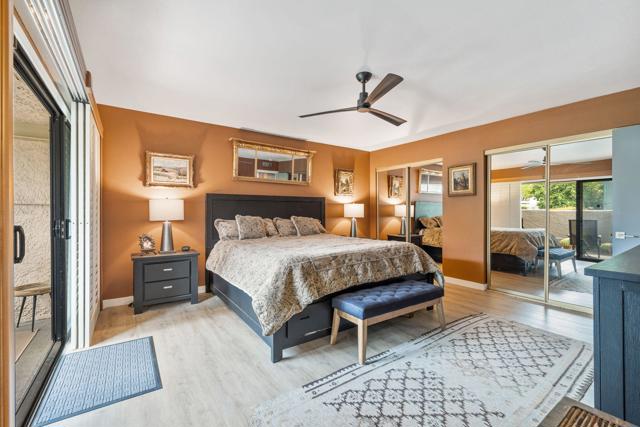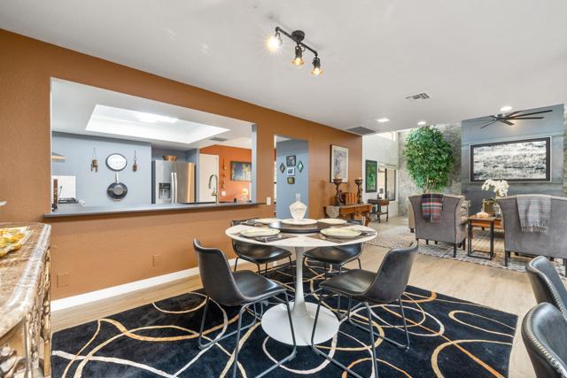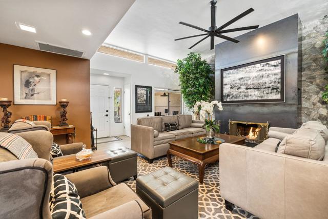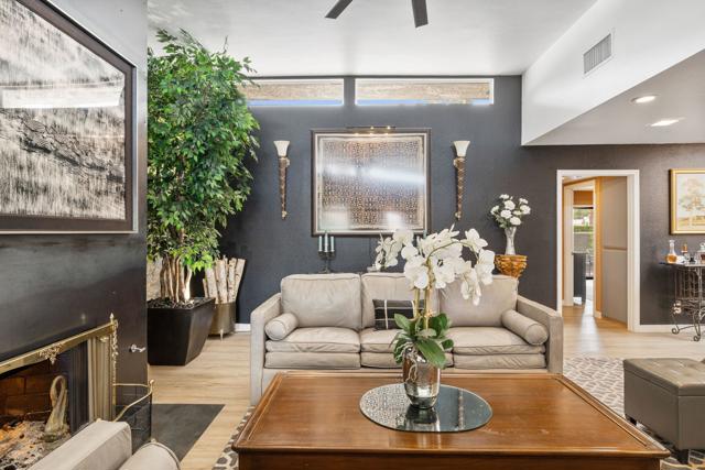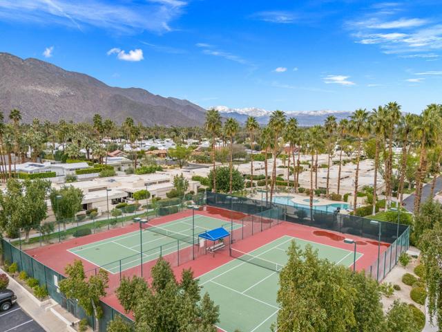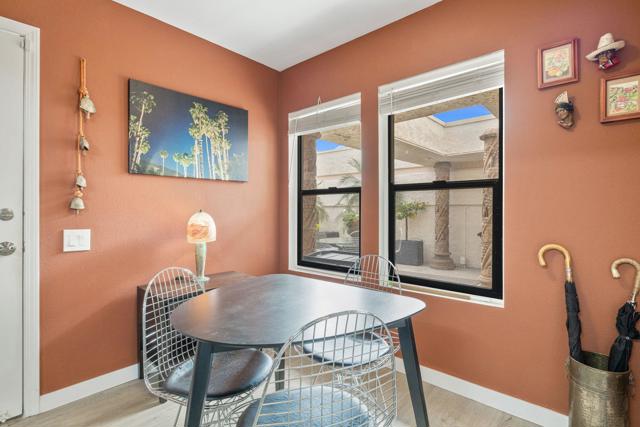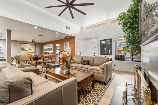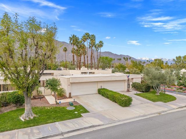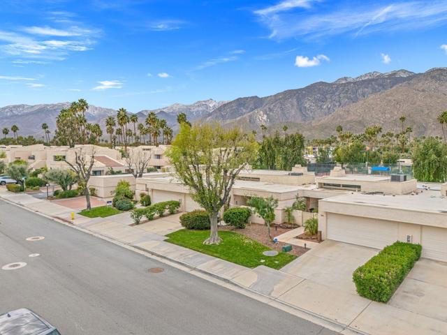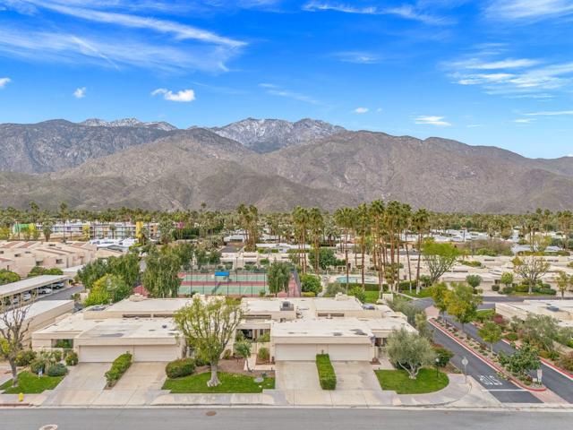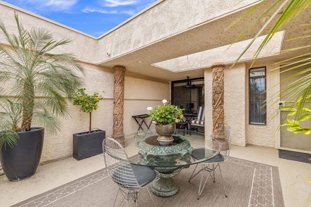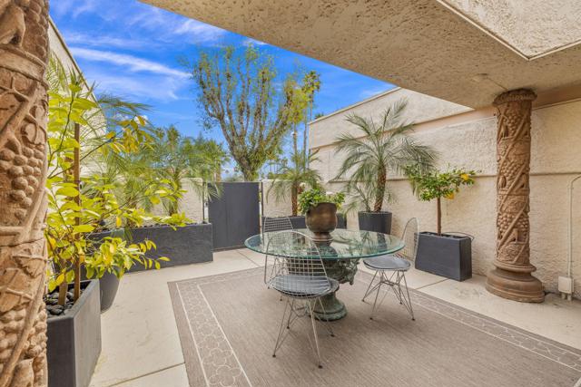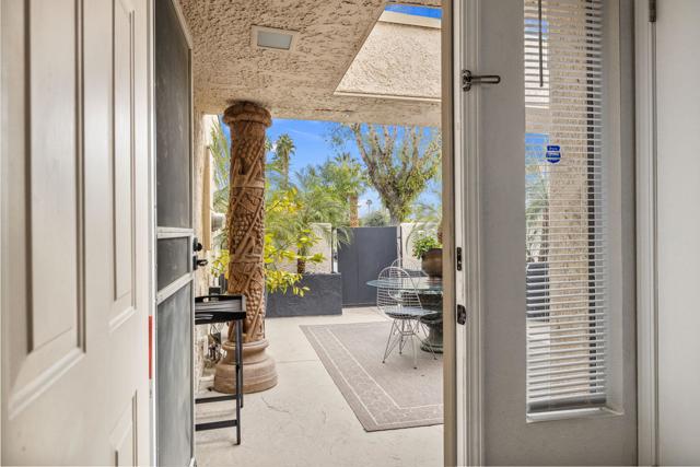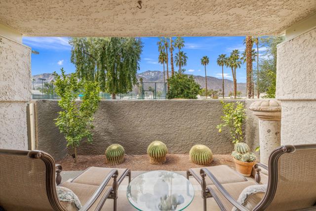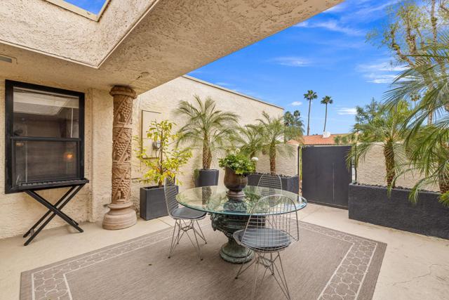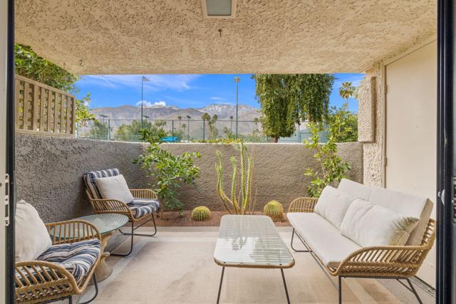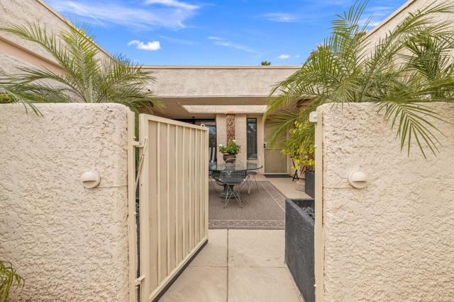 Experience refined desert living in this sophisticated villa-style residence in the Versailles community of South Palm Springs, offered on Fee land.Perfectly located just steps from Smoketree Commons and Smoke Tree Plaza, this beautiful 2-bedroom, 2-bath home blends the privacy of a single-family residence with the ease of condo living. Thoughtfully designed with excellent bedroom separation, the spacious floor plan lives more like a private retreat than a typical condo.Vaulted ceilings and skylights flood the family room with natural light, while a dramatic floor-to-ceiling steel-clad fireplace creates a striking architectural focal point. Designed for both everyday comfort and effortless entertaining, the sunken wet bar and spacious kitchen with a separate breakfast area flow seamlessly to the private two-car attached garage with laundry.Each generously proportioned bedroom offers abundant closet space and its own private patio, enhancing the seamless indoor-outdoor lifestyle Palm Springs is known for. A gated front courtyard with private landscaped patio provides a serene outdoor spaces ideal for morning coffee, sunset gatherings, or quiet relaxation, while the beautifully maintained community grounds showcase surrounding mountain vistas.Versailles is beautifully maintained and surrounded by lush greenery and fruit trees, offering multiple resort-style pools and spas, as well as a community tennis court. HOA dues of $615 per month include earthquake insurance, water, trash, roof coverage, exterior landscaping, and pool and spa care -- providing true lock-and-leave convenience.Located just two residential streets from the CV Link Trail for easy biking into downtown, and minutes to PSP International Airport, fine and casual dining, shopping, nightlife, and local favorites including the Purple Room, this residence offers exceptional access to the very best of South Palm Springs.Move in, unpack, and embrace a lifestyle where space, sophistication, and resort-inspired amenities come together effortlessly. Schedule your private showing today, opportunities like this in South Palm Springs move quickly.