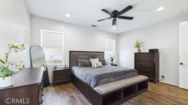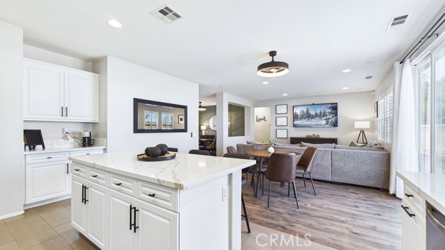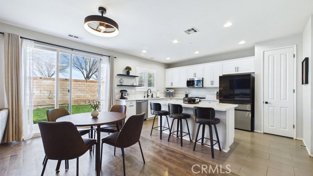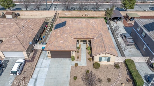 Welcome to this super sharp, beautifully upgraded 2012-built single-story home located in a true pride-of-ownership neighborhood! Featuring an open floorplan with a formal dining room, this home offers the perfect blend of comfortable everyday living and great entertaining space. With approximately $40,000 in recent improvements, this move-in-ready property is packed with updates you're going to love. The open and bright kitchen features updated quartz surfaces on the island and counters, modern appliances, and new cabinet hardware, creating a fresh, stylish space that flows seamlessly into the main living areas. Recent upgrades continue throughout the home, including new flooring in both the primary and guest bathrooms, updated interior lighting fixtures, and smart light switches in the living room and primary bedroom for added convenience and efficiency. Outside, the improvements really shine -- enjoy a backyard with newly poured concrete and a retaining wall, plus extended driveway cement for extra parking or easier access. The home is also future-ready with an EV charging hookup added at the electrical panel, and updated exterior lighting enhances both curb appeal and functionality. Even better, an owned solar system is included in the purchase, helping reduce energy costs while adding long-term value. This is the kind of home that feels cared for the moment you arrive -- clean, upgraded, energy-efficient, and ready for its next owner to enjoy!
