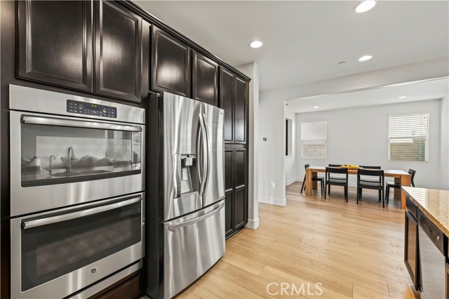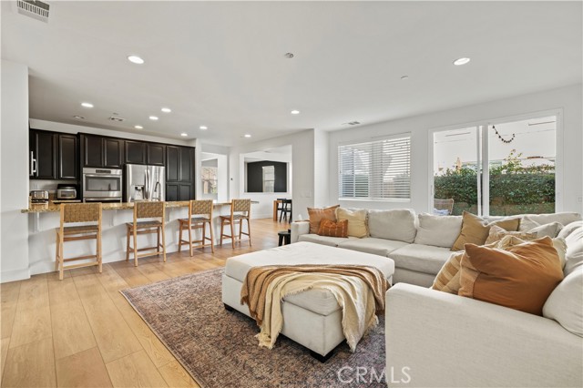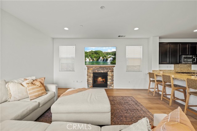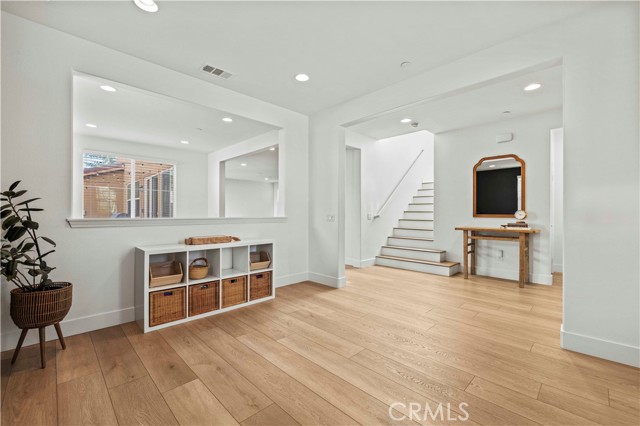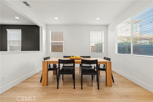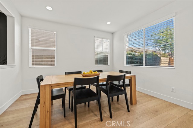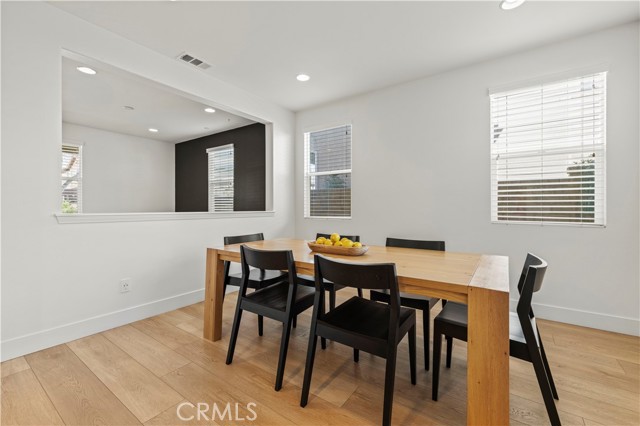 The main level features custom light oak LVP flooring that feels timeless and elevated, along with a completely remodeled powder room. The elegant front sitting room flows seamlessly into the dining area and open-concept kitchen, creating a bright and functional space for everyday living and entertaining. Just outside, the backyard is thoughtfully designed with pavers and string lights, creating the perfect setting for gatherings or quiet evenings at home.