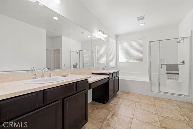 Upstairs, a massive loft provides endless possibilities. It can easily serve as a fifth bedroom, media room, game room, or additional lounge space. The secondary bedrooms are generously sized and include closet organizers, while the upstairs bathroom offers a dual vanity. A spacious upstairs laundry room with ample storage adds everyday convenience.
