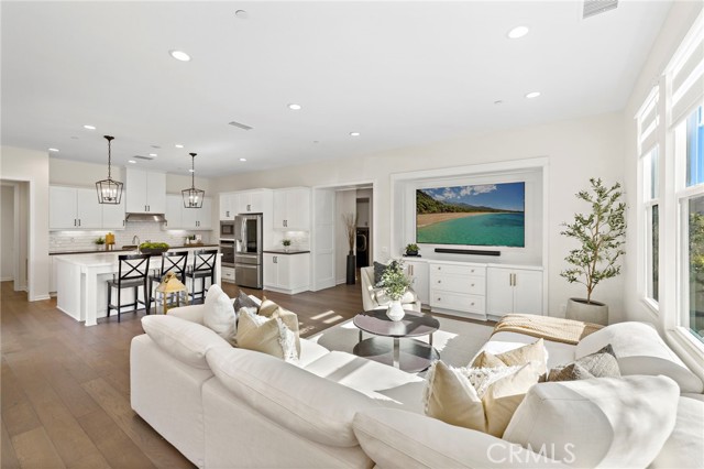 Welcome home to 44 Jarano. This is a Highly sought-after Plan Four in the coveted Reverie neighborhood of Rancho Mission Viejo, showcasing sophisticated design, thoughtful upgrades, and exceptional indoor-outdoor living. This beautifully appointed home features soaring 10-foot ceilings and expansive kitchen and living spaces filled with abundant natural light. The chef-inspired kitchen is highlighted by an oversized island with white quartz countertops, upgraded designer backsplash, and seamless flow into the main living and dining areas — perfect for everyday living and entertaining. Engineered hardwood flooring and curated designer touches elevate the home throughout. Offering a flexible and functional floor plan, the home includes two spacious main-level bedrooms, ideal for guests or multigenerational living, plus two additional bedrooms upstairs accompanied by a versatile loft space. Step outside to a private, tranquil courtyard designed for entertaining, complete with a built-in barbecue and refrigerator. Additional upgrades include epoxy garage flooring and numerous thoughtful enhancements throughout. A rare opportunity to own one of Reverie’s most desirable floor plans combining comfort, style, and modern California living. Experience resort-style living at its finest. As part of the Rancho Mission Viejo community, you'll enjoy access to an array of resort-like amenities. From sprawling pools and fitness centers to hiking trails, sports parks, arcade, coffee shop, community events, Esencia K-8 school, and so much more, there's always something to explore and enjoy.