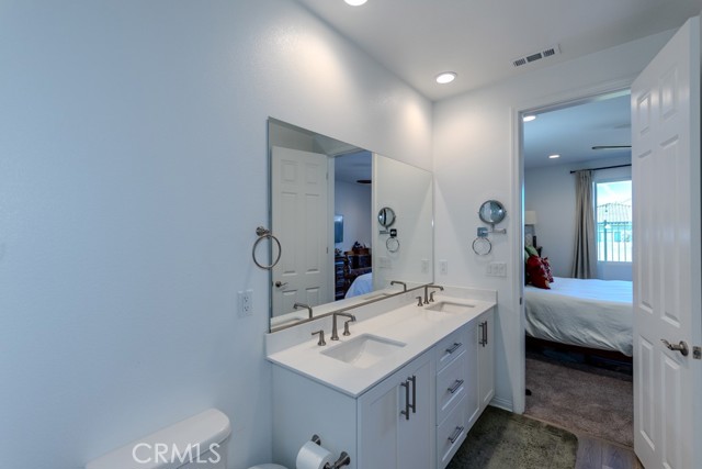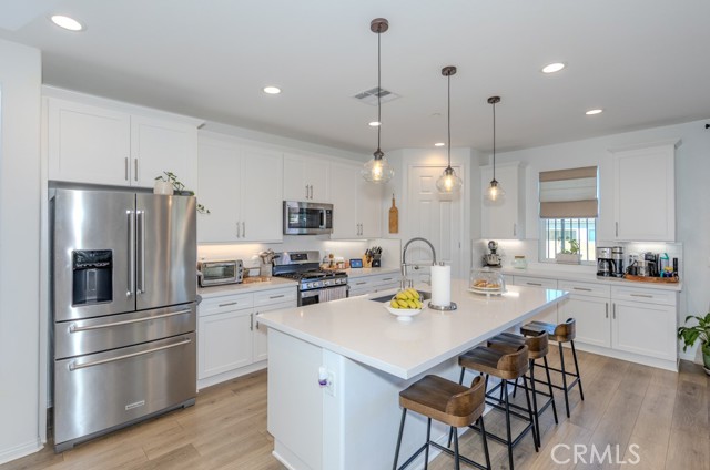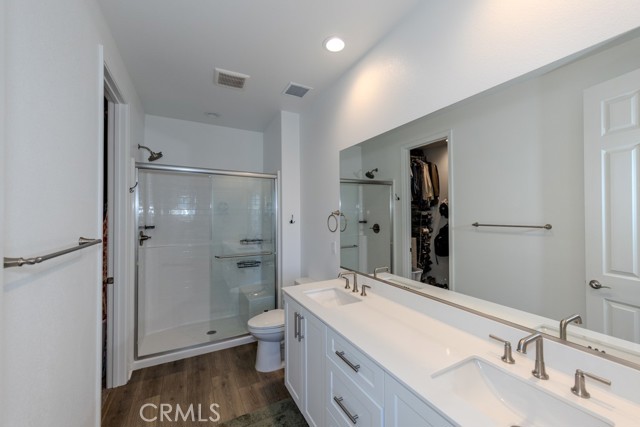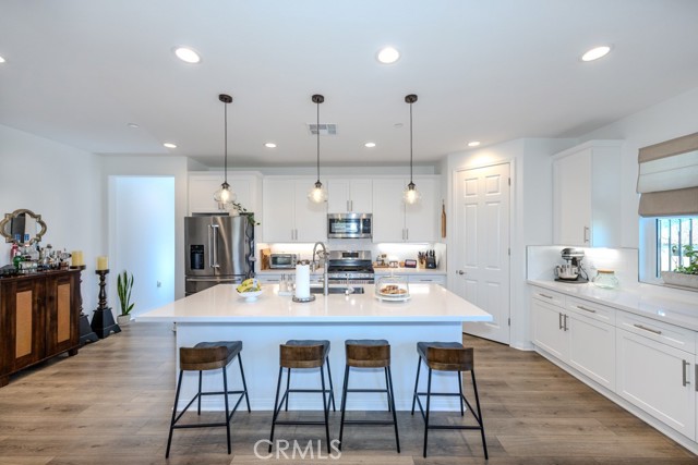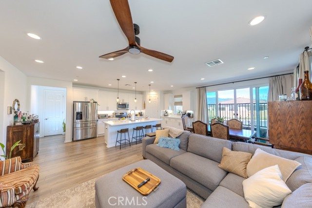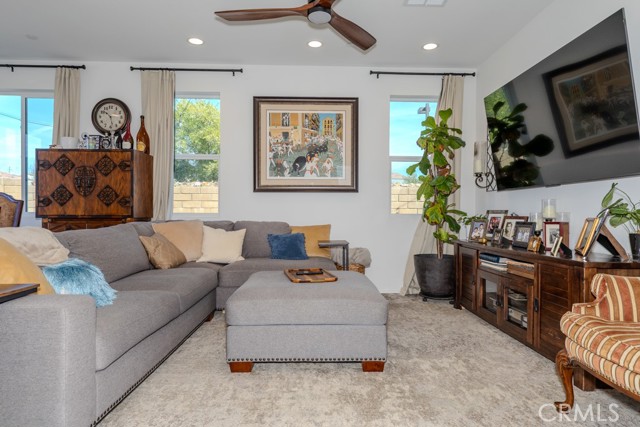 Oversized sliding glass doors frame gorgeous mountain views and fill the home with natural light. The gourmet kitchen showcases a spacious quartz island, top-of-the-line appliances, and elegant finishes. Seller invested significantly in premium builder upgrades. A combination of upgraded laminate flooring and plush carpet runs throughout, while ceiling fans enhance comfort in every room. The primary suite is a tranquil retreat featuring a walk-in shower also showcases quartz countertops and a generous walk-in closet. Additional energy-efficient features include a tankless water heater and Energy Star appliances. Terramor, named Master Planned Community of the Year by the Building Industry Association of Southern California (2018), offers resort-style amenities, more than 540 acres of protected open space, scenic views of Cleveland National Forest, 5 miles of trails, and 22 acres of parks. Conveniently located near the I-15 freeway, Glen Ivy Hot Springs, and shopping and dining at The Shops at Dos Lagos. Don’t miss the opportunity to own an exceptional home in one of Corona’s most desirable communities. Schedule your private showing today before it's too late!