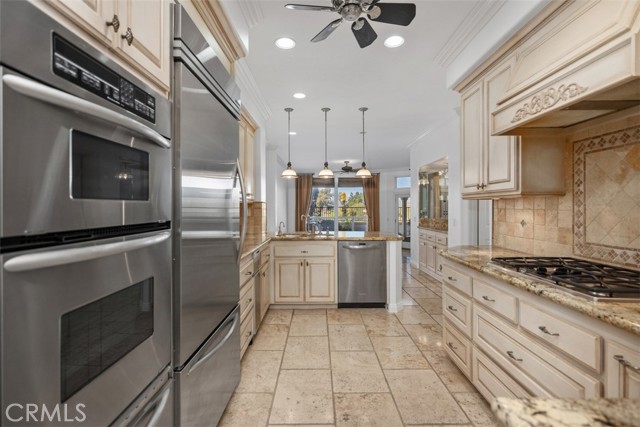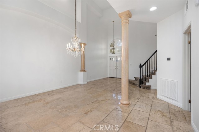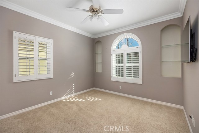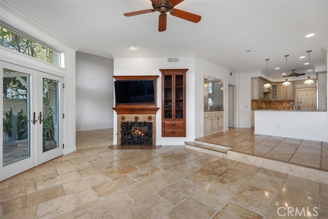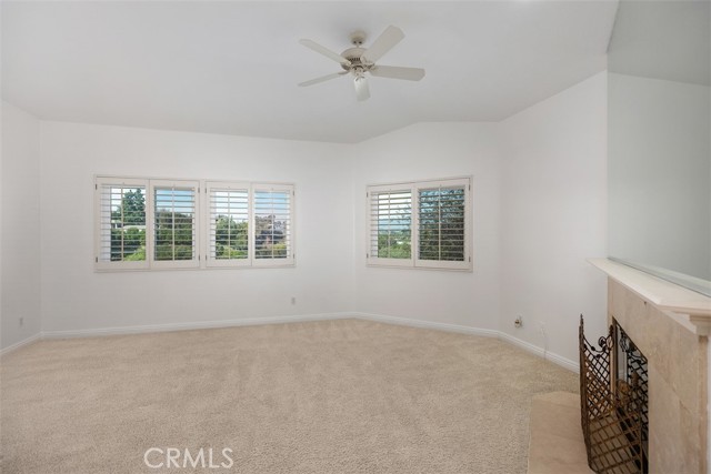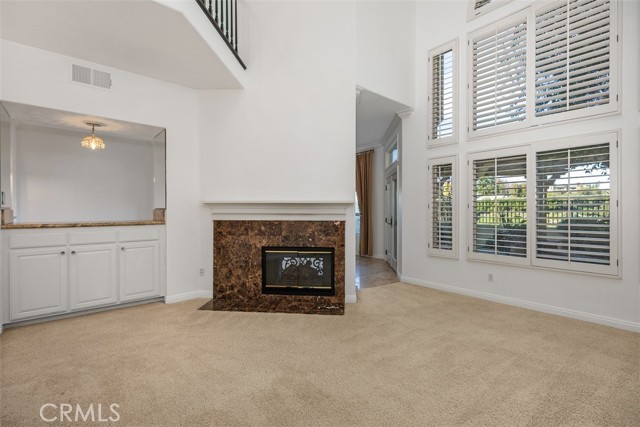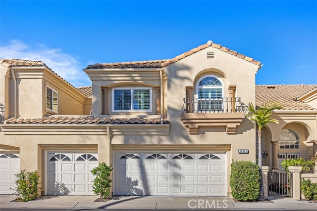This beautiful view townhome has it all. The panoramic view encompasses the mountains, hills, city lights, and is only steps away from a large park inside Moulton Ranch. This 3-bedroom 2.5 bath home has 2549 square feet and is located within the gated community of Bella Vista with its own pool and spa. The high ceiling architecture and a skylight brings in tons of light, and the floorplan is open and free flowing. Travertine flooring, granite counters, quartz bathroom counters, and dual sinks in master and guest baths are some of the upgrades. Plantation shutters, ceiling fans, and recessed lights throughout the home plus fireplaces in living room, family room, and master bedroom. The rear patio has a cover for shade, stone pavers, and awesome views. The master bedroom has a fireplace, views, and a mirrored walk-in closet in the bath area with a separate tub and shower. The kitchen has travertine flooring, granite counters, and leads to an inside laundry with gas & 220, then into the 3-car garage with tons of built-in cabinets. This property has it all and is easy to show.