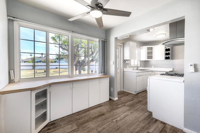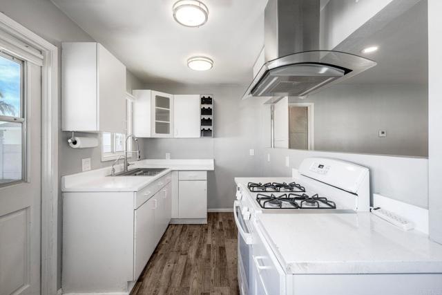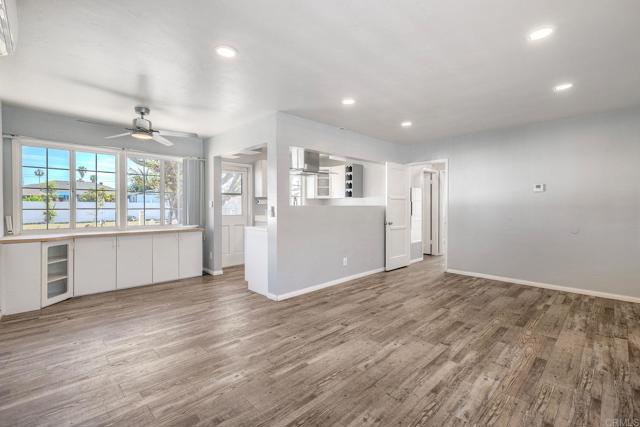 Bright and thoughtfully updated 2-bedroom, 1-bath home in the heart of Chula Vista with an open layout and clean, modern finishes throughout. The kitchen features white cabinetry, quartz-style countertops, and a gas range, flowing seamlessly into the main living space. Luxury vinyl plank flooring, recessed lighting, mini-split A/C and heat, dual-pane windows with plantation shutters, and a one-car garage with laundry hookups add everyday comfort and convenience. The spacious, fully fenced backyard with mature trees and a large patio offers flexibility for relaxing, entertaining, gardening, or exploring future possibilities. Conveniently located near schools, shopping, dining, and freeway access.