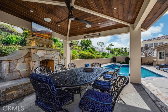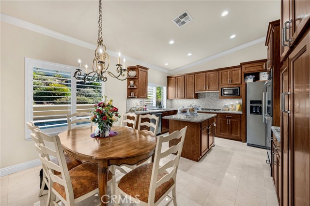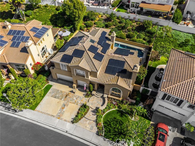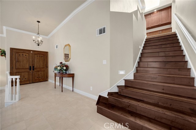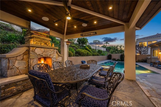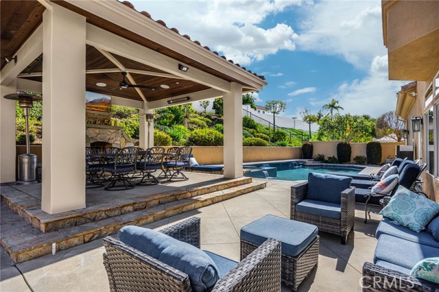 Welcome to Luxury Living in La Verne Heights! This impeccably upgraded 4-bedroom, 3-bathroom home in the prestigious gated community of La Verne Heights offers approximately 2,735 sq ft of refined living paired with a stunning resort-style backyard. Enter through elegant double doors into a warm living room that flows seamlessly into the formal dining area—perfect for everyday living and entertaining. The adjacent gourmet kitchen features top-of-the-line appliances, generous counter space, and a large quartz natural stone island, opening to the inviting family room with fireplace and built-in entertainment center. A convenient downstairs bedroom sits near a full bath and laundry room, ideal for guests or multi-generational living. Upstairs, the serene primary suite provides a private retreat with plush carpeting, crown molding, and a spa-inspired bath with dual vanities, soaking tub, and separate shower. Two additional spacious bedrooms share a dual-vanity hall bath, and the versatile loft is perfect for a home office, den, or play area. Pride of ownership shines throughout with a high-efficiency solar system, custom paint, upgraded lighting, rich hardwood flooring, and extensive crown molding. Step outside to your private oasis designed for year-round enjoyment. The breathtaking backyard features a saltwater Pebble Tec pool and spa, expansive decking, lush illuminated landscaping, and automatic sprinklers. The oversized gazebo is fully equipped with a fireplace, lighting, space heaters, and surround sound, while the adjacent BBQ center offers additional quartz countertops and a built-in refrigerator. Completing this exceptional home is a three-car garage with state-of-the-art epoxy flooring and abundant custom storage.