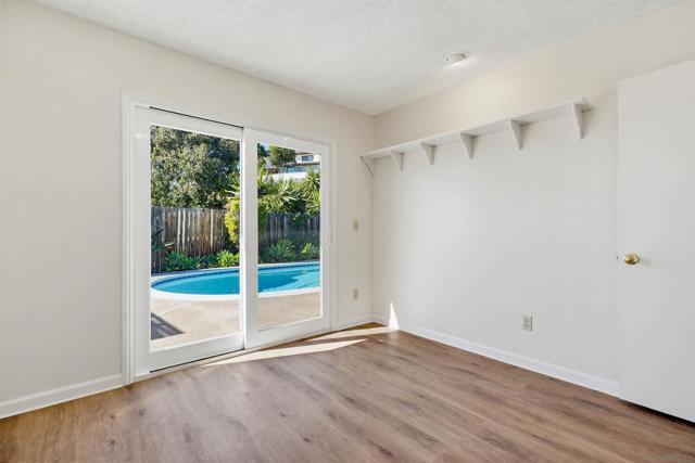 Welcome to a modern oasis nestled in the heart of San Diego, thoughtfully updated to reflect contemporary design. This exquisite 4-bedroom, 2-bathroom residence spans 1,601 square feet and sits on a generous 0.36-acre lot. The recently upgraded kitchen features stylish cabinetry, elegant quartz countertops, and stainless-steel appliances enhanced by luxury vinyl plank flooring that extends throughout the entire home. The bathrooms have been beautifully renovated ensuring a blend of comfort and style. A brand-new HVAC system provides year-round comfort. Eco-conscious homeowners will love the fully owned 7.2 kW nameplate rated solar PV system, now enhanced with a new 200A electrical panel and breakers, offering increased capacity for modern energy needs. An existing EV car charger further underscores the home’s commitment to sustainability, Outside, unwind in the solar heated newly resurfaced pool and spa, surrounded by beautifully landscaped grounds that offer the perfect escape for relaxation and entertainment. Experience the allure of contemporary living in this exceptional San Diego home. This home is situated near Lake Murray, Mission Trails Regional Park, and Cowles Mountain, shopping, dining, and within the district of highly ranked schools, including Marvin Elementary School, Lewis Middle School, and Patrick Henry High School. No HOAs or Mello-Roos.