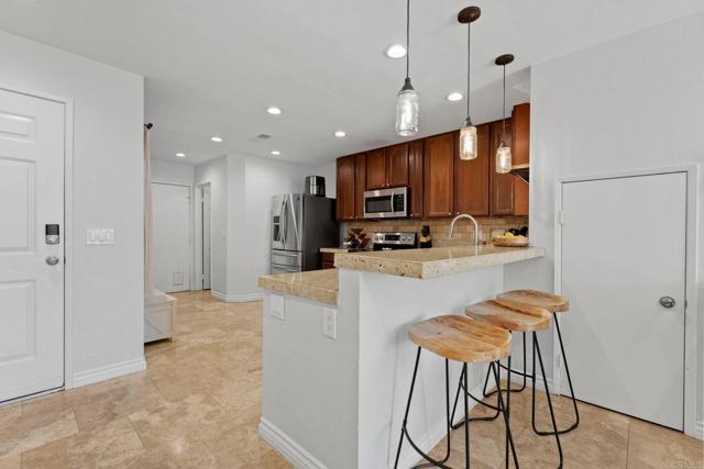 A beautifully maintained and completely move-in ready 3 bedroom, 2.5 bathroom townhome offering approximately 1,464 square feet of comfortable living space in the highly desirable Knolls community of El Cajon. If you have been waiting for the perfect starter home that checks all the boxes, this is it. From the moment you walk in, you feel how open and inviting the layout is. The main level features a spacious living area centered around a stunning stacked stone fireplace that creates warmth and character. The open floor plan flows seamlessly into the dining area and kitchen, making it ideal for everyday living, entertaining, or simply enjoying a quiet night at home. Natural light pours in, giving the home a bright and airy feel throughout. The kitchen offers generous cabinet storage, ample counter space, and an easy connection to the main living areas so you are never cut off from guests or family. There is also a convenient half bath downstairs for visitors. Upstairs, you will find three well-sized bedrooms, including a spacious primary suite with its own private bathroom. The additional bedrooms are versatile and perfect for kids, guests, a home office, or a workout space. The secondary bathroom upstairs is thoughtfully laid out to serve the additional bedrooms comfortably. This home offers central heating and air conditioning for year-round comfort, in-unit laundry located in the attached garage, and direct access from the garage into the home for added security and convenience. In addition to the attached one-car garage, there is an assigned parking space plus nearby guest parking. Location within the community truly sets this unit apart. It is ideally positioned close to the community pool while still offering privacy. Whether you want to take a quick dip on warm summer days or relax poolside on the weekends, you are just steps away. The Knolls community is well-maintained and offers a welcoming environment with mature landscaping and a peaceful atmosphere. The location in El Cajon provides easy access to shopping, dining, schools, and major freeways, making commuting and daily errands simple and convenient. This home is perfect for a first-time buyer looking to build equity instead of paying rent, a small family wanting low-maintenance living, or even an investor seeking a solid property in a strong rental market.