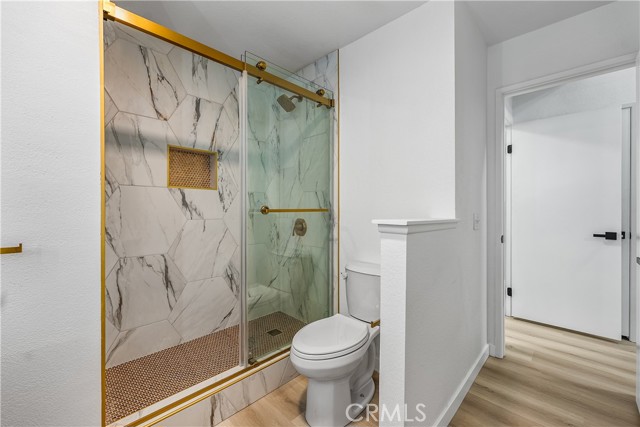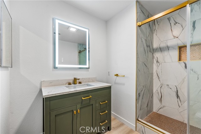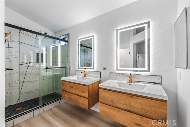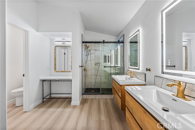 The bathrooms offer spa-inspired finishes with elegant bronze fixtures and custom tile work. The primary suite is a true retreat, complete with floating dual vanities and upgraded walk-in closet fixtures for modern convenience.