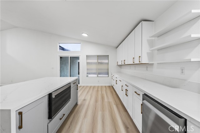 Experience refined living in this fully renovated 4-bedroom, 2-bathroom home in Rosamond. Designed with sophistication in mind, this residence showcases a stunning chef’s kitchen featuring quartz countertops, a dramatic waterfall-edge island wrapped in matching stone, custom built-in microwave, designer range hood, and brand-new appliances.