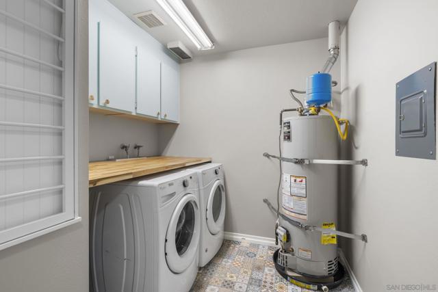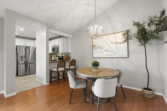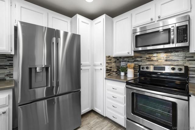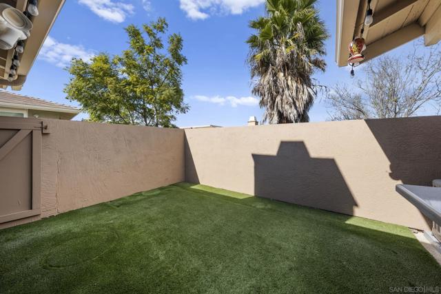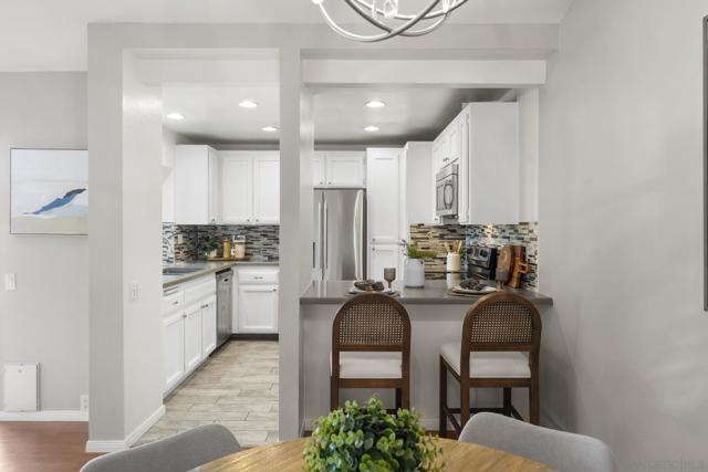 This beautifully updated 2-bedroom, 2-bathroom condo offers a bright and inviting interior, enhanced by dual pane windows, elegant window treatments, vaulted ceilings, recessed lighting, and cozy fireplace. The renovated kitchen boasts granite counters, stainless steel appliances, and a convenient breakfast bar—perfect for entertaining or casual dining. The primary bedroom offers a spacious walk-in closet and an ensuite bathroom with dual sinks, while the second bathroom has also been nicely updated. Laminate flooring runs throughout. Also included is an oversized laundry room with extra storage and butcher block counter. With central heating and air conditioning and a private, turfed outdoor area, this home combines comfort and convenience. Plus an oversized 1 car garage + 1 parking space. Playmor features resort-style amenities, including pools, spas, and tennis courts