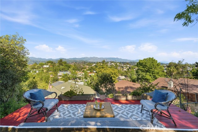 Located in the hills of Mount Washington, this unique and beautiful three-bedroom, two-bath home offers breathtaking views, thoughtful updates, and effortlessly stylish California living. The inviting living room features recently refinished hardwood floors, vaulted wood-clad ceilings, a built-in bookshelf, and a cozy wood-burning fireplace — all framed by sweeping views of the San Gabriel Mountains and snow-capped Mount Baldy. It’s a warm and welcoming space, perfect for relaxing or entertaining. A functional galley kitchen is outfitted with stainless steel appliances, a Waterdrop Reverse Osmosis system, and tasteful finishes that flow seamlessly into the adjacent dining area. The spacious primary suite offers a serene retreat with a beautifully tiled walk-in shower and not one, but two, generous walk-in closets! Two additional bedrooms are located across the hall for added privacy and share a well-appointed second bath. Step outside to a terraced, thoughtfully landscaped hillside backyard filled with a lush abundance of drought-tolerant plants and mature fruit trees. A large wood deck provides the perfect setting to take in the stunning 180-degree views — ideal for morning coffee, sunset dinners, or moments of quiet contemplation. Ample space beyond the deck invites future possibilities. The oversized two-car garage includes two additional storage rooms, offering exciting potential for a home office, studio, or expanded living space. Zoned for the sought-after Mt. Washington Elementary School or Aldama Elementary School, with its respected dual language program (buyer to confirm enrollment options). Enjoy an unbeatable location just two blocks from neighborhood gem Cleland Park, with a gated playground and separate dog park, or take an easy downhill stroll to the many shops and restaurants along York Boulevard. A rare opportunity to own a view home in one of Northeast LA’s most cherished neighborhoods.