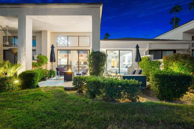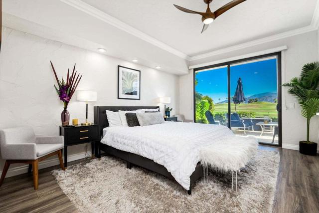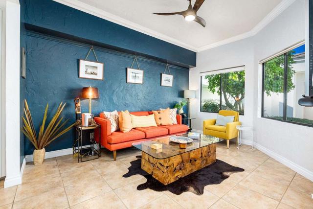 Walls of glass frame panoramic southern views of lake, fairway, and Santa Rosa mountains from the moment you enter this PGA West residence, set on the iconic Par 3 13th hole of the Pete Dye Stadium Course - home of the American Express PGA Tournament.This sought-after Champion 2 floor plan offers soaring ceilings, true indoor-outdoor flow, and a compelling alignment of golf, water, and mountain views. The residence features two bedrooms plus a versatile den and a thoughtfully designed kitchen with stone counters, stainless appliances including a newer refrigerator, and a clean, Scandinavian-inspired aesthetic that carries throughout the home. Well-appointed baths with walk-in showers and refined finishes complement the cohesive design, while a newer air-conditioning system adds everyday comfort and efficiency.A private courtyard and golf-view patio extend the living space, creating effortless indoor-outdoor living. A two-car garage with EV charging station adds modern convenience. Ideally located near community pools, spas, and clubhouse amenities, with access to championship golf, tennis, pickleball, dining, and 24-hour guard-gated security.Offered turnkey furnished for immediate enjoyment in one of PGA West's most visually striking settings.