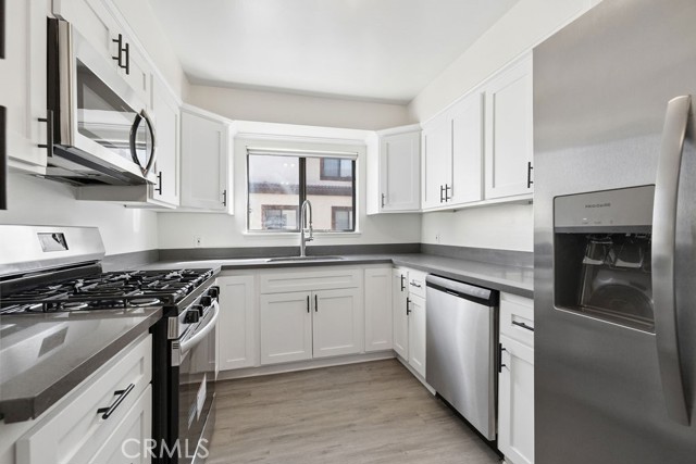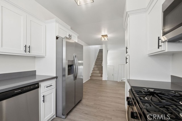 Welcome to Lakewood Village townhomes! Upon entering, you will find an inviting open living area with sliding doors that open into a private patio. A short staircase leads you up to the dining and kitchen area, which features brand new appliances, including a microwave, oven/range, dishwasher and refrigerator, along with a bedroom with bathroom and balcony. Upstairs you’ll find two bedrooms connected by a Jack and Jill bathroom. Additionally, the top level includes convenient laundry hookups with a brand new washer and dryer. From the living area, a separate staircase leads down to the attached two-car garage. This beautiful townhome has just been painted with sparkling new aplliances and is centrally located near a varity of markets, businesses and is in the ABC school district. Come see it for yourself!