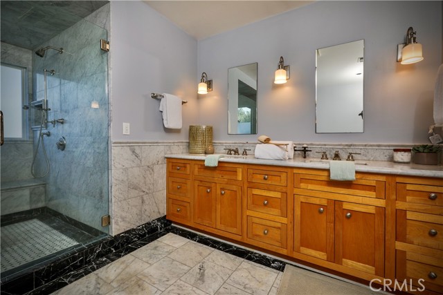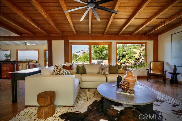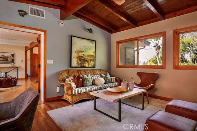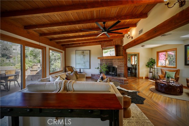 Private French Country Hideaway in the hills of Sherman Oaks! 3 Bed | 2 Bath | Den + basement ~2,800 Sq Ft | Nearly ½ Acre. At the top of Ventura Canyon Ave, the 300-foot gated driveway leads to a single home - tucked into the hillside, surrounded by open sky, mature trees, and distant views. This secluded 3-bedroom, 2-bath home with den and semi-finished basement offers nearly 2,800 square feet of handcrafted charm and thoughtful design. Inspired by French country living, it features custom cabinetry and floors made from reclaimed old-growth yellow pine, antique French pavers, wood-beamed ceilings, and a classic brick fireplace. The open kitchen blends function and beauty with a long marble island and breakfast bar, Viking stove, Sub-Zero fridge, antique Portuguese tile backsplash, and a wet bar with wine fridge. The vaulted-ceiling living room is surrounded by dual-pane windows, bringing in light and framing panoramic views of the Valley, nearby hills, and the San Gabriel mountains. Bedrooms are situated for privacy, each with outdoor access and generous closet space. The primary suite features a walk-in closet and a marble tiled bath with soaking tub and an oversized shower. The basement offers a peaceful workspace, wine cellar, or studio, with a 14 foot ceiling. Step outside to unwind in the new hot tub, relax beneath the oversized wood-beamed carport, or dine al fresco on one of several patios. Set on nearly half an acre with almost no visible neighbors, the property offers rare seclusion, just minutes from studios, canyon trails, and the dining and markets of Ventura Blvd. Other Highlights include: Insulated roof, tankless water heater, whole-home water filtration system, seven ceiling fans, two-car garage, two-car carport, and generous driveway parking with ample space for an RV. Feels like you’re in the country, yet still close to everything.