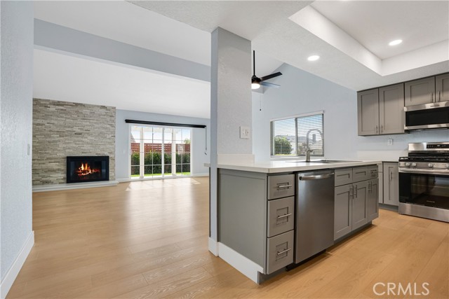 Beautiful Single-Level 4 Bedroom, 2 Bath Corner Lot Home North of Foothill in a desirable Upland neighborhood! This well-designed pride of ownership home offers a functional split-wing layout and generous living spaces throughout. The oversized Primary Suite is privately situated on the north wing and features an ensuite bathroom and three closets, including a walk-in closet. On the south wing, you’ll find three spacious secondary bedrooms, each offering ample closet space, along with a centrally located full bathroom convenient to the bedrooms and main living areas. Step inside to tall vaulted ceilings and an inviting, bright and open formal living room at the entry. The home also features a separate family room off the kitchen with a beautiful stacked stone fireplace, ideal for everyday living and entertaining. The kitchen showcases quartz countertops, stainless steel appliances, and abundant cabinetry, and bartop opening into the main living space. The backyard offers a private and inviting outdoor setting with a spacious covered patio. The meticulously manicured yard features mature hedging along the perimeter for added privacy. The pergola-style patio cover creates a comfortable shaded area ideal for outdoor dining, and the extended side yard walkway provides additional functionality and access. Additional highlights include: open-concept living areas, indoor laundry room, dual pane windows, recessed lighting and updated light fixtures, central A/C, elegant laminate flooring throughout the main areas, attached 2-car garage, extended driveway with parking for multiple vehicles, and a desirable corner lot location. Conveniently located north of Foothill near shopping, dining, and everyday amenities, this home offers comfort, space, and a highly functional floor plan.