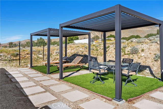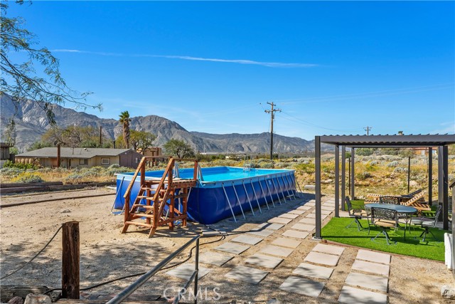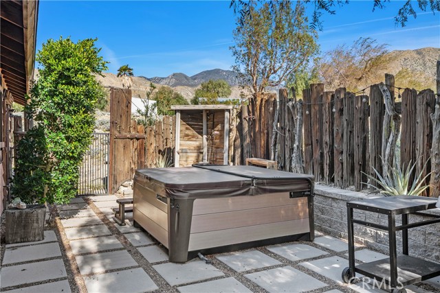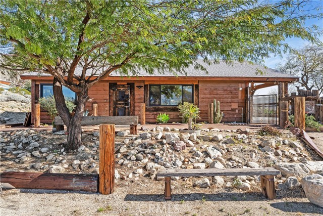 Discover a truly one-of-a-kind desert retreat! Set on a full acre with unforgettable 360° mountain and desert views, this remarkable property was crafted in 2001 by a desert-inspired artist and thoughtfully remodeled in 2023. The Desert Shack blends handcrafted charm with modern eco-friendly upgrades, showcasing features like custom doors, ironwork, stamped concrete floors, soaring ceilings, and preserved art installations that make this home unlike anything else on the market. This 2-bedroom, 2-bath residence offers a spacious, entertainer-friendly kitchen complete with custom cabinetry, wood-style countertops, and new KitchenAid appliances. Step outside to your private oasis featuring a brand-new saltwater pool and spa—perfect for soaking in the sunsets. An additional detached outdoor room provides flexible space for a guest suite, art studio, or pool house. All of this serenity is just a short drive from Palm Springs, casinos, shopping, and Joshua Tree National Park. If you’re seeking a unique blend of artistry, comfort, and breathtaking natural beauty, this is the home you’ve been waiting for. This property also has a strong short-term rental history call for income history.